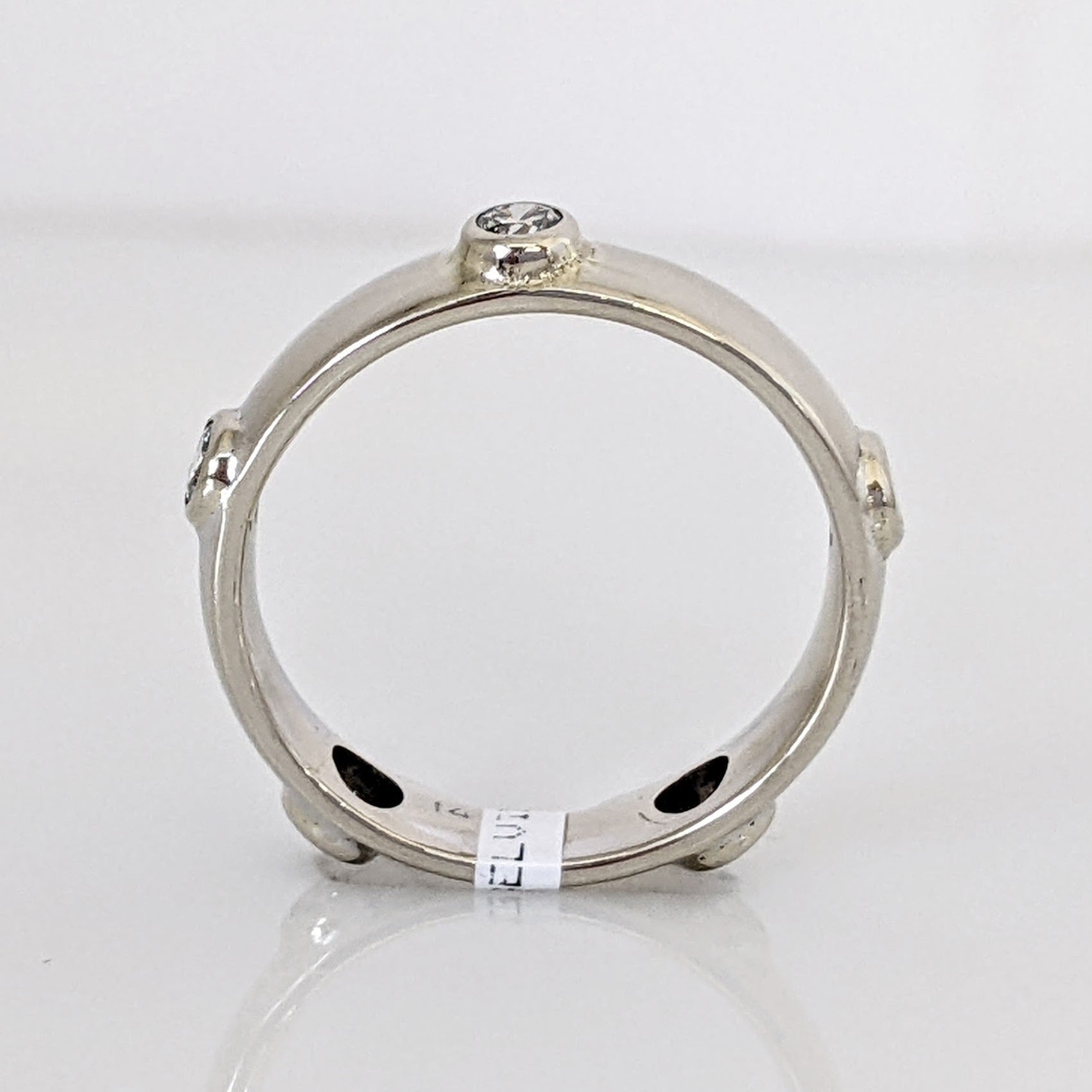 14K WHITE .30 CARAT TOTAL WEIGHT SI2 I DIAMOND ROUND (5) BEZEL SET ESTATE BAND 3.2 GRAMS