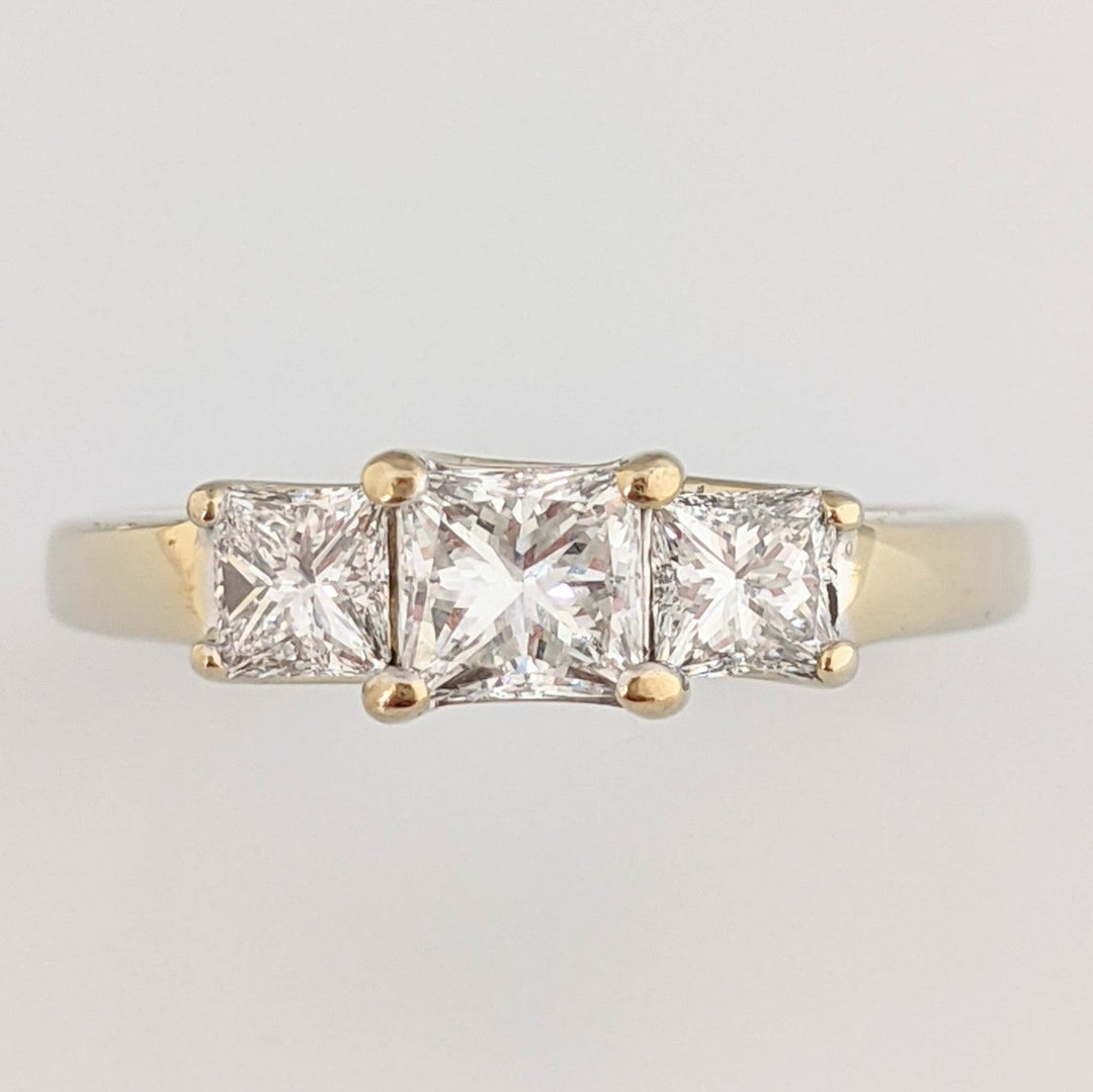 14K TWO-TONE 1.00 CARAT TOTAL WEIGHT I1 I DIAMOND PRINCESS CUT (3) TRINTIY ESTATE RING 5.2 GRAMS