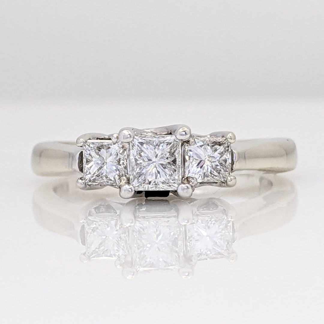 14k WHITE .66 CARAT TOTAL WEIGHT SI1 G DIAMOND PRINCESS CUT (3) ESTATE RING 3.4 GRAMS