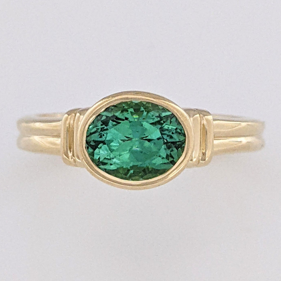 14K GREEN TOURMALINE OVAL 5X7 ESTATE BEZEL SET ESTATE RING 4.2 GRAMS