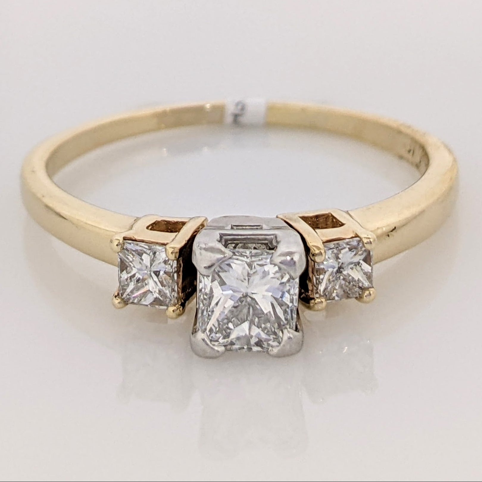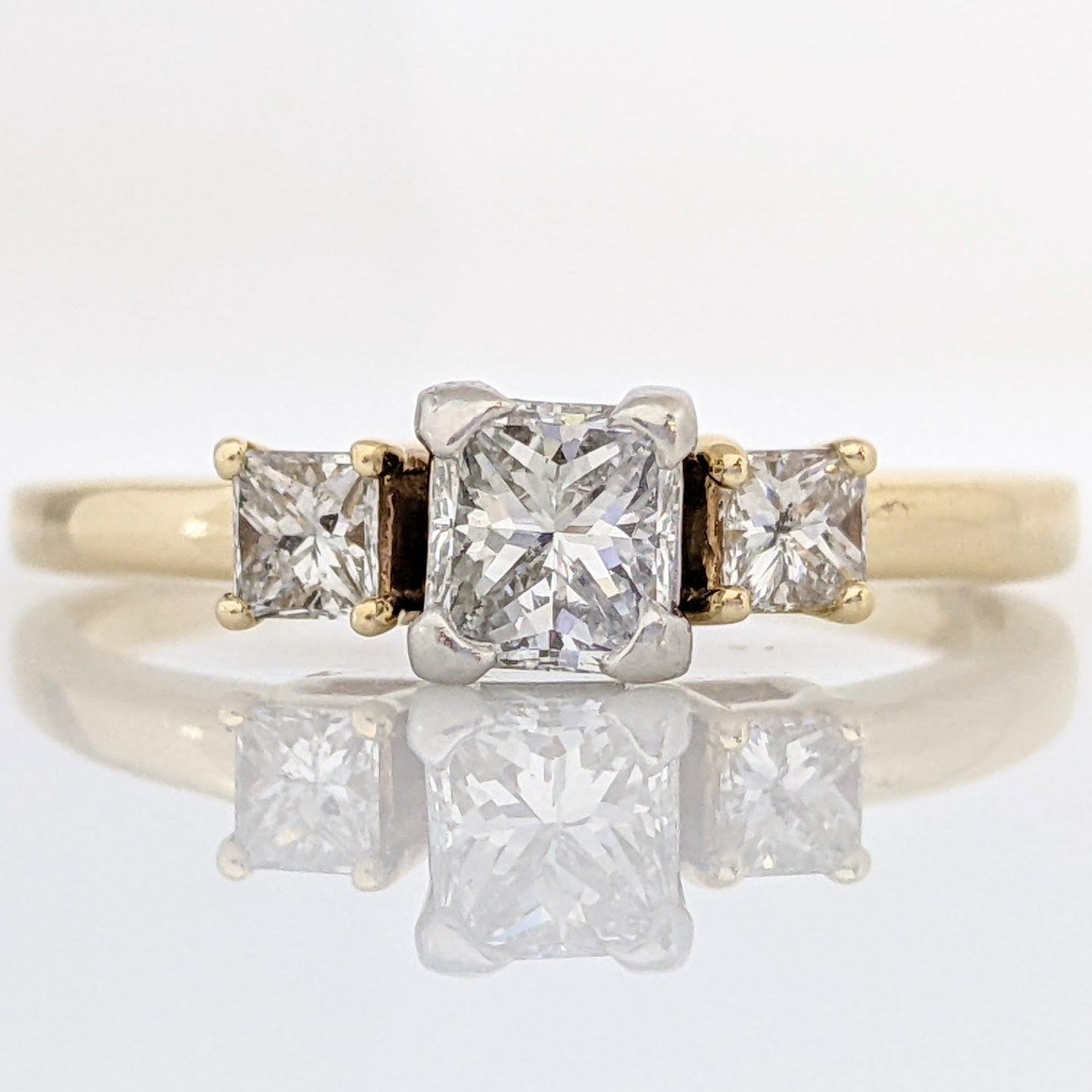 14K .95 CARAT TOTAL WEIGHT VS2-I1 G-I DIAMOND PRINCESS CUT ESTATE TRINITY RING 3.7 GRAMS