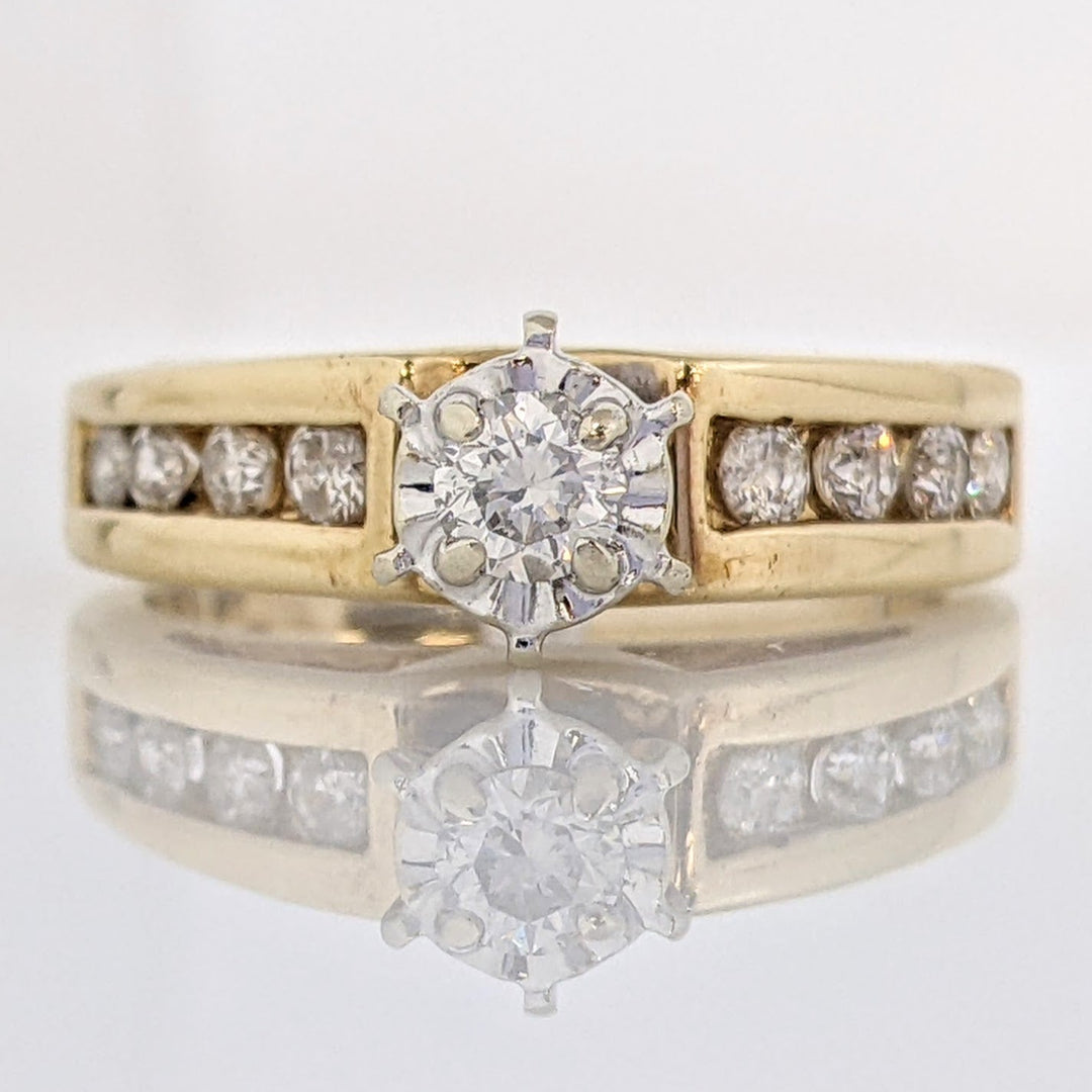 14K .43 CARAT TOTAL WEIGHT SI2 I ROUND DIAMOND (9) ILLUSION HEAD CHANNEL SET ESTATE RING 4.9 GRAMS