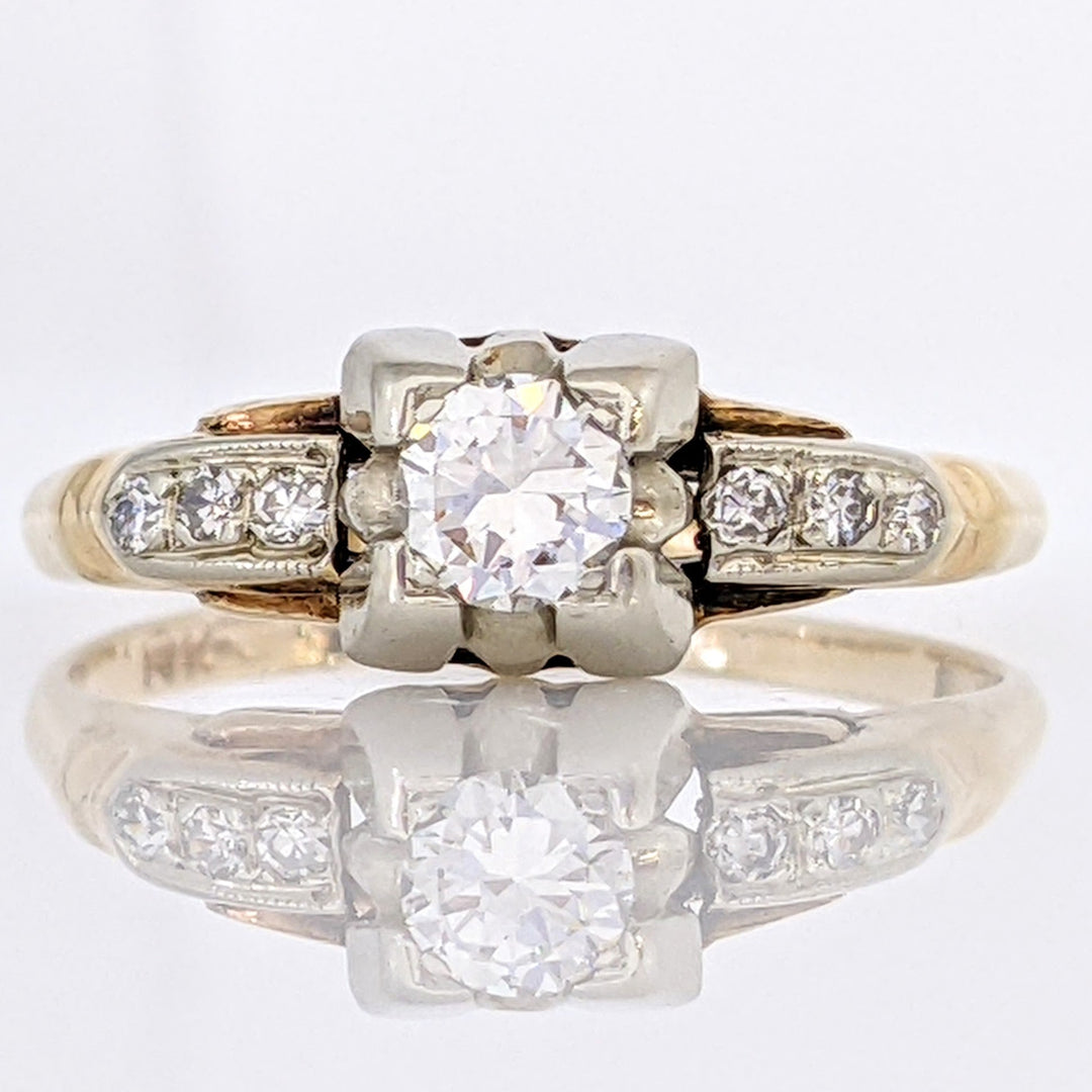 14K .35 CARAT TOTAL I2 H ROUND DIAMOND ILLUSION HEAD SOLITAIRE ESTATE RING 2.6 GRAMS