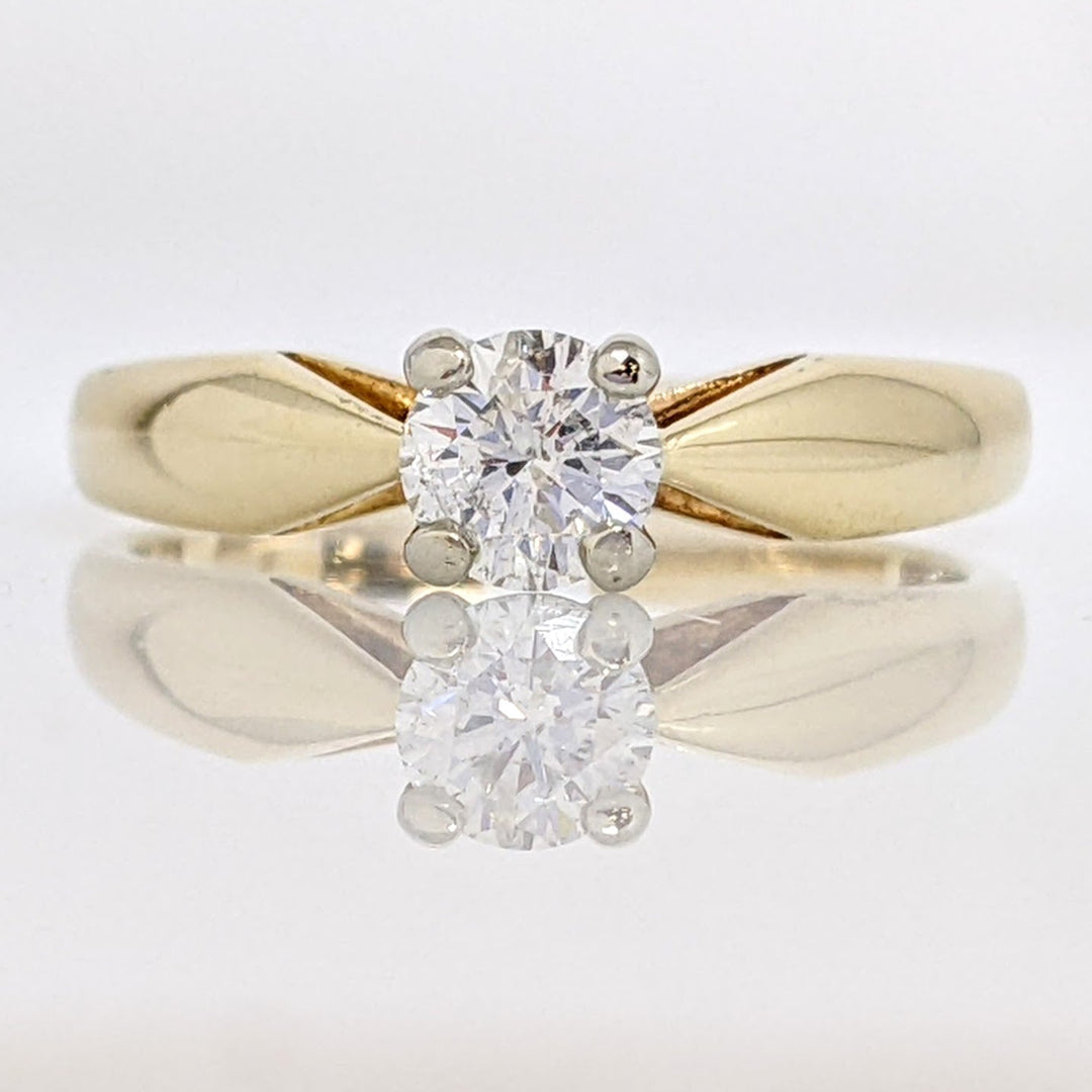 14K .38 CARAT TOTAL SI1 I DIAMOND ROUND 6- PRONG SOLITARE ESTATE RING