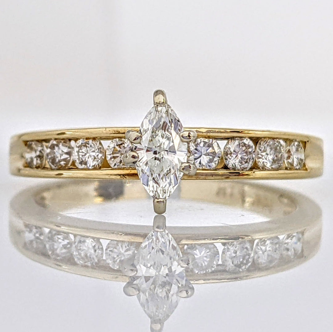 14K .65 CARAT TOTAL WEIGHT SI2 H DIAMOND MARQUISE WITH (8) ROUND ESTATE RING 2.7 GRAMS