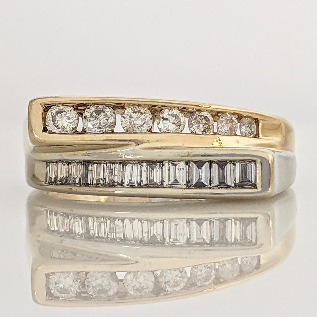 14K TWO-TONE .69 CARAT TOTAL WEIGHT SI2 H DIAMOND ROUND (7) BAGUETTE (12) ESTATE RING 5.2 GRAMS