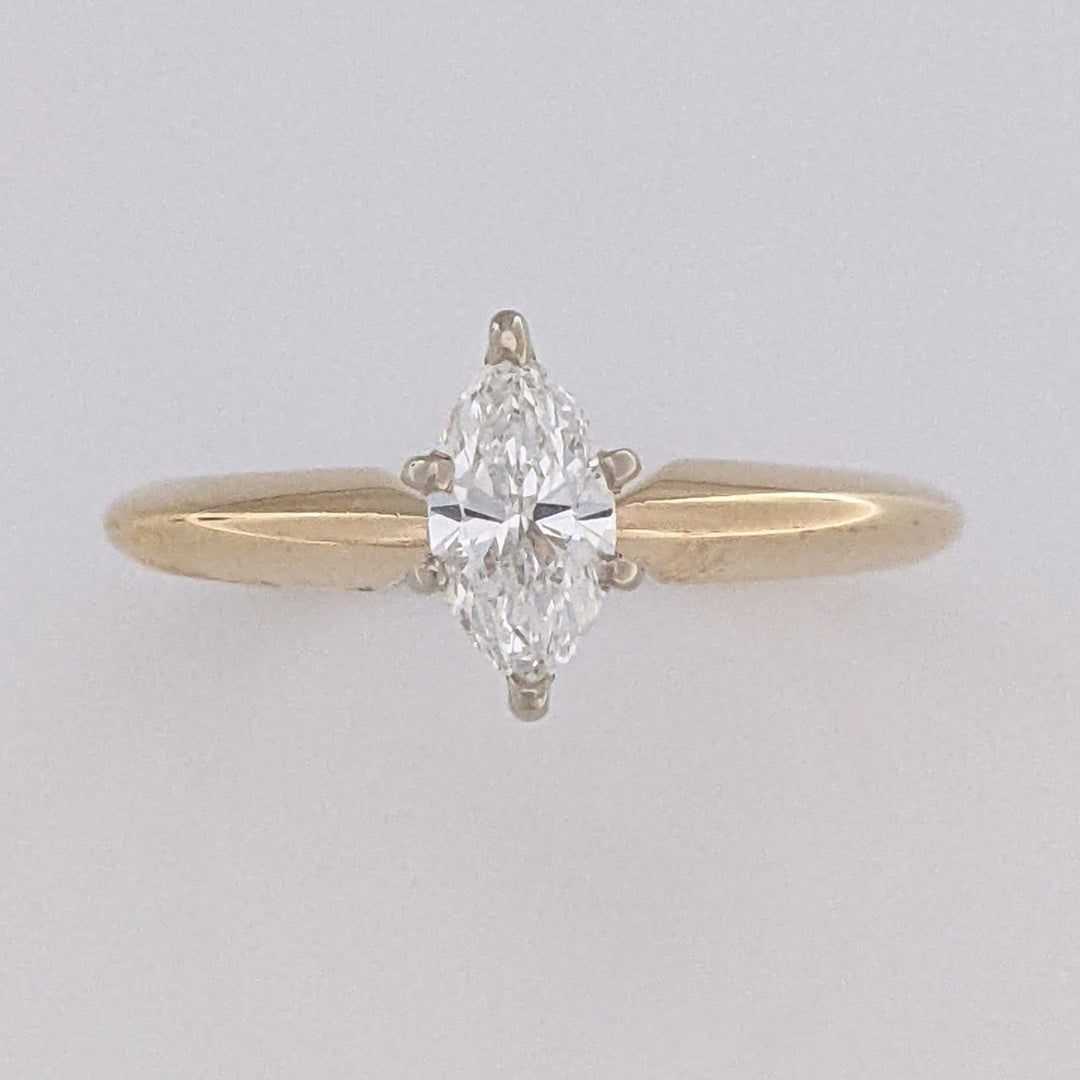 14K .27 CARAT TOTAL SI1 H DIAMOND MARQUISE CUT SOLITAIRE ESTATE RING 2.1 GRAMS