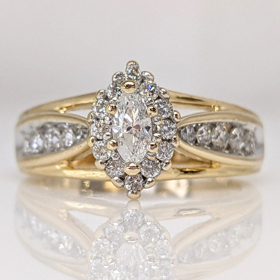 14K .66 CARAT TOTAL WEIGHT I1 H DIAMOND MARQUISE (1) ROUND (23) ESTATE RING 4.8 GRAMS