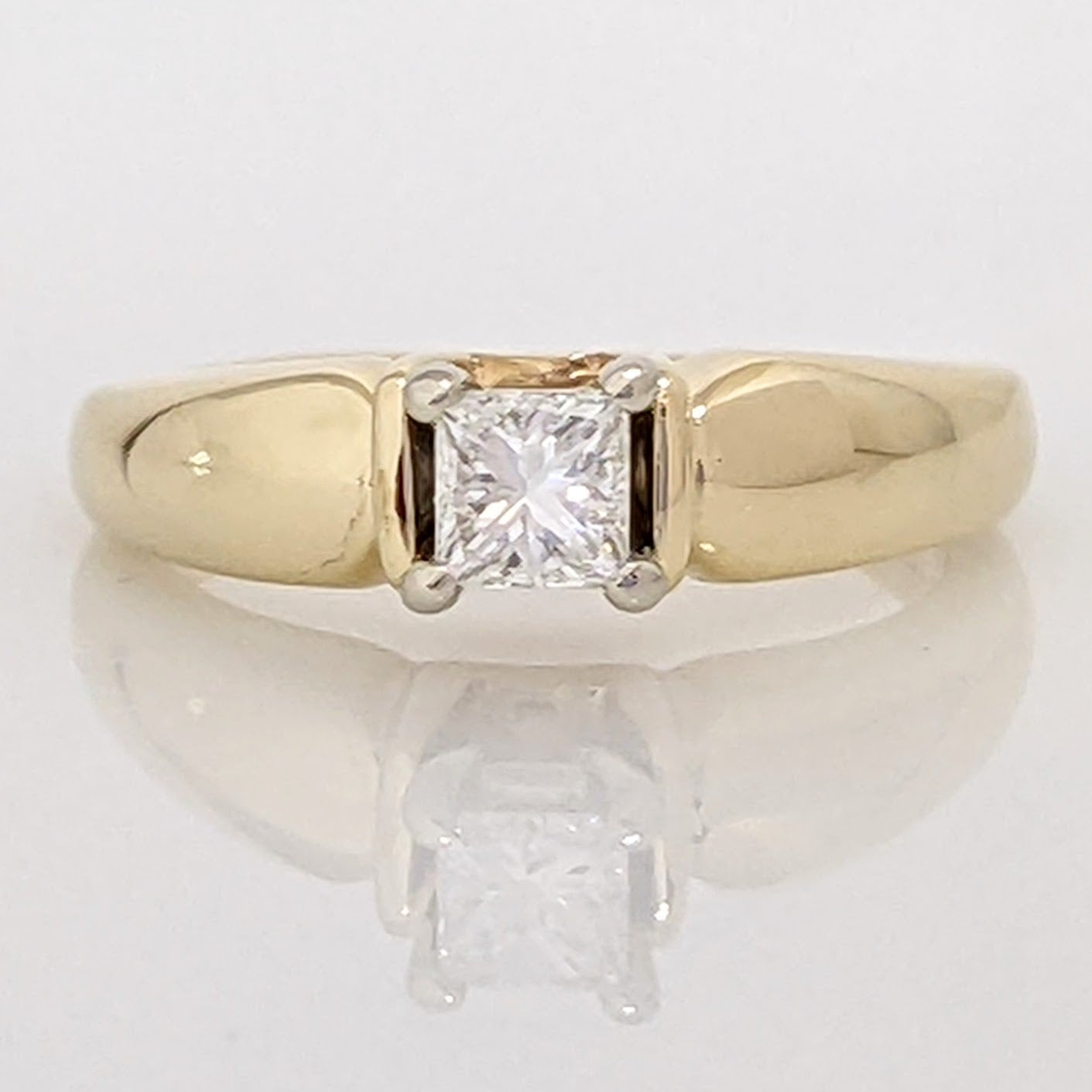 This stunning 14K estate ring features a princess cut diamond with a total carat weight of .36ct and a VS2 clarity rating. It radiates in a classic F color and is set in an elegant 4.1 grams of 14K gold. Treat yourself or a loved one to a timeless classic.