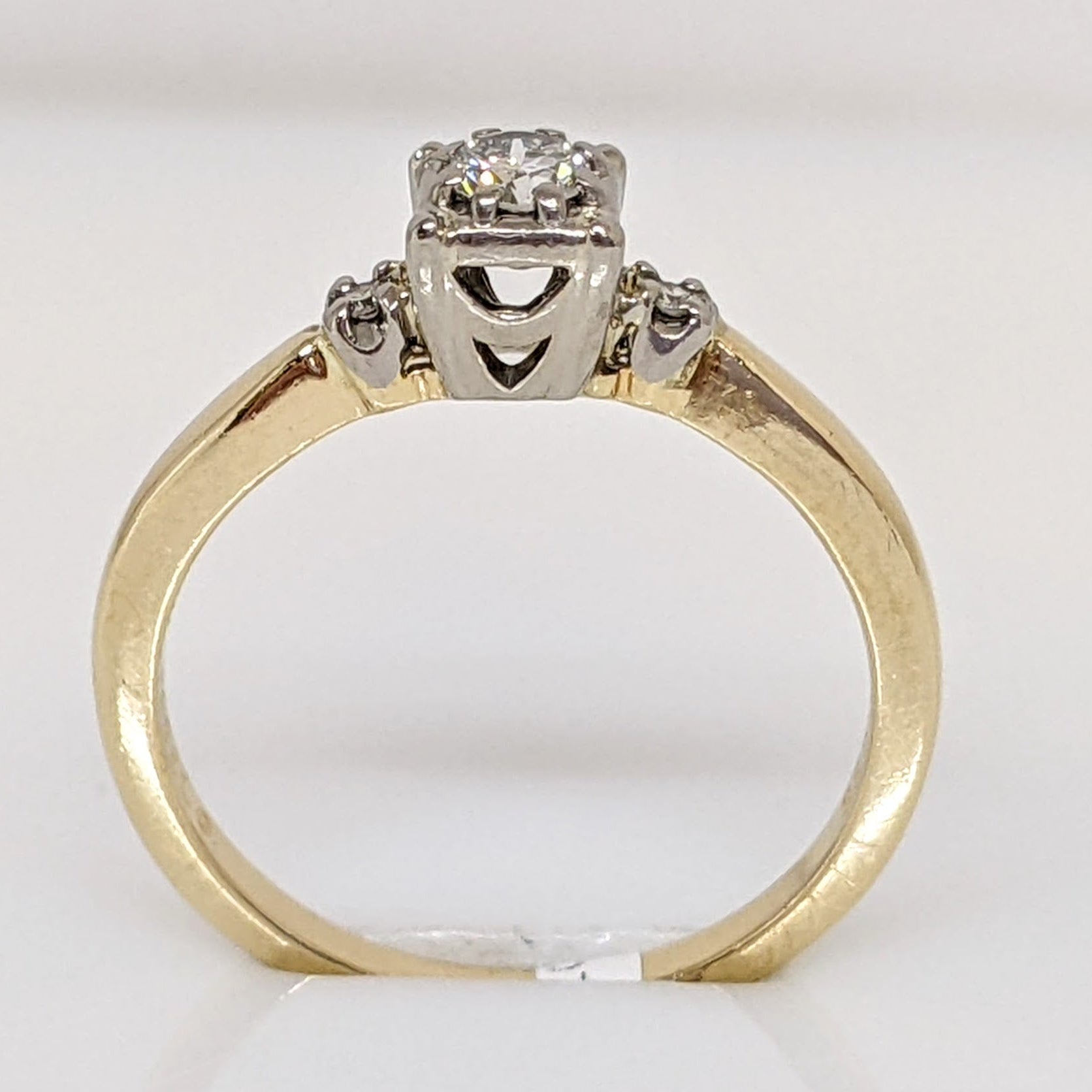 A stunning piece of jewelry, this 14k estate ring has a total diamond weight of .11 carats and 3 round diamonds of clarity SI1 in an F color grade. Crafted with a 2.0-g weight, this ring is sure to make a lasting impression.