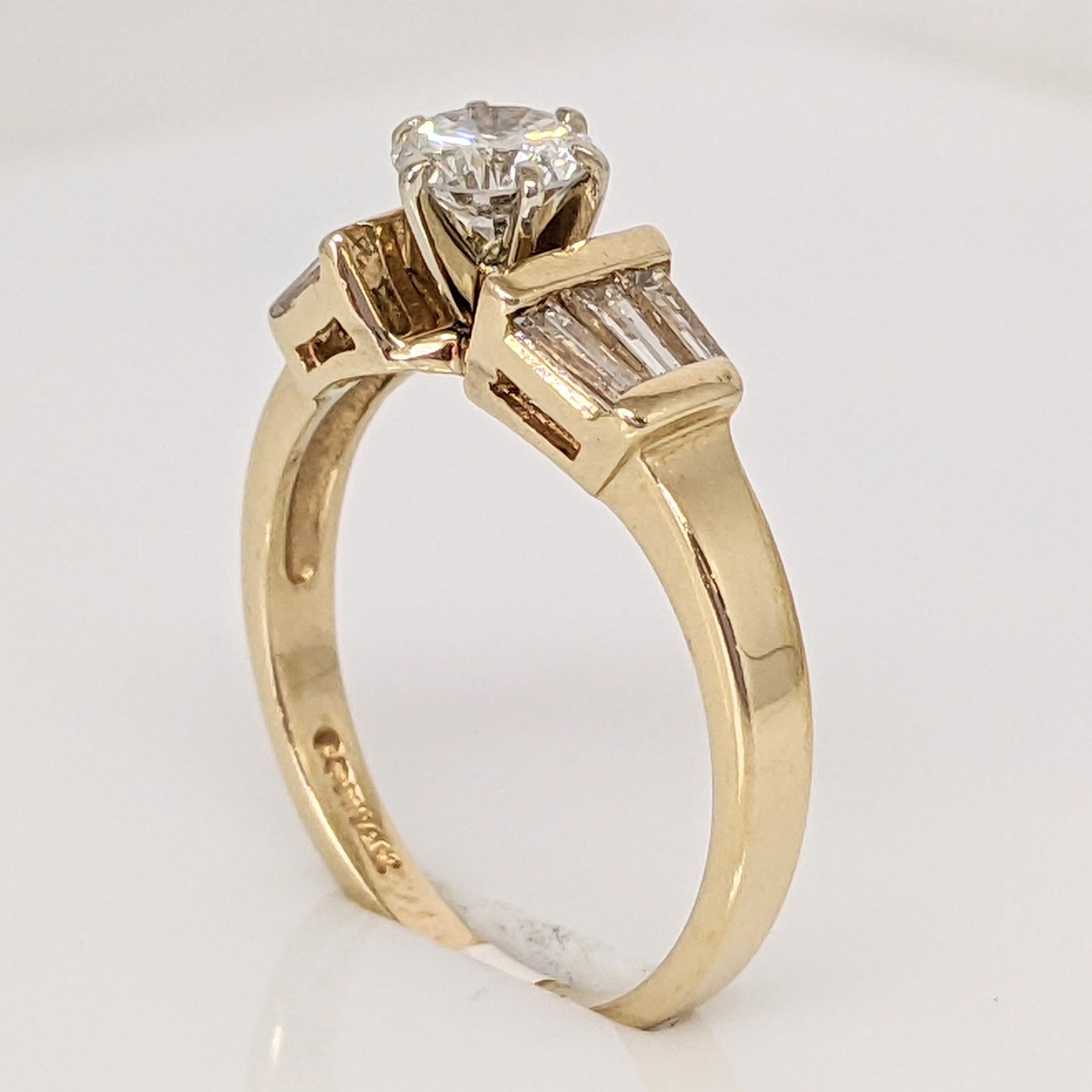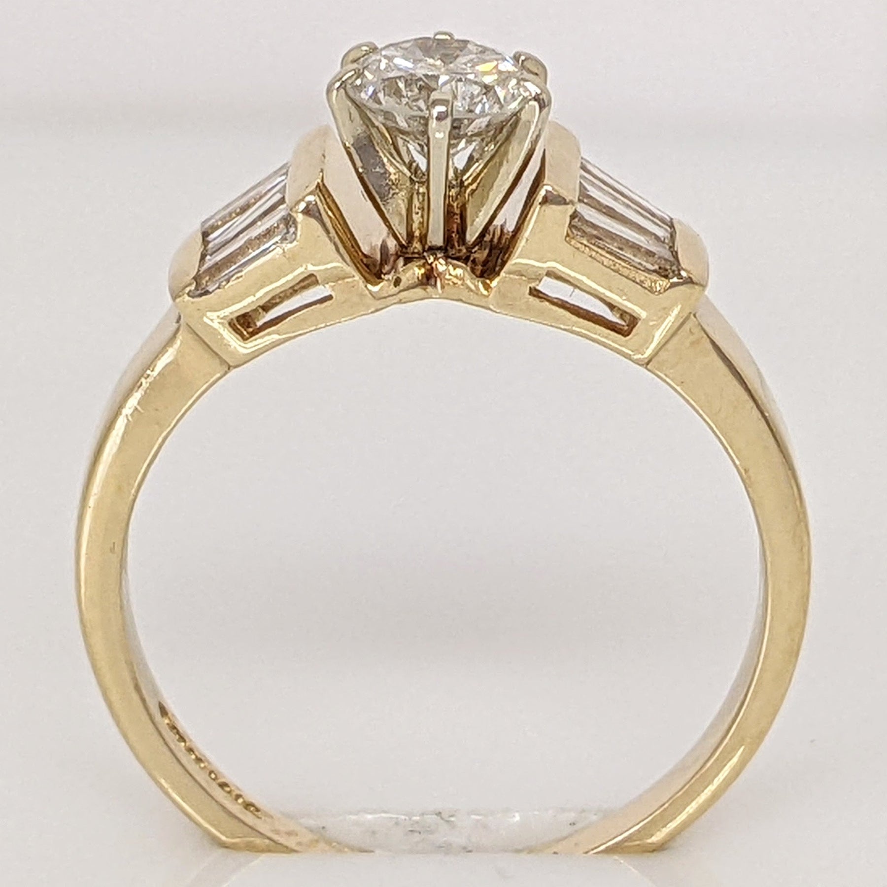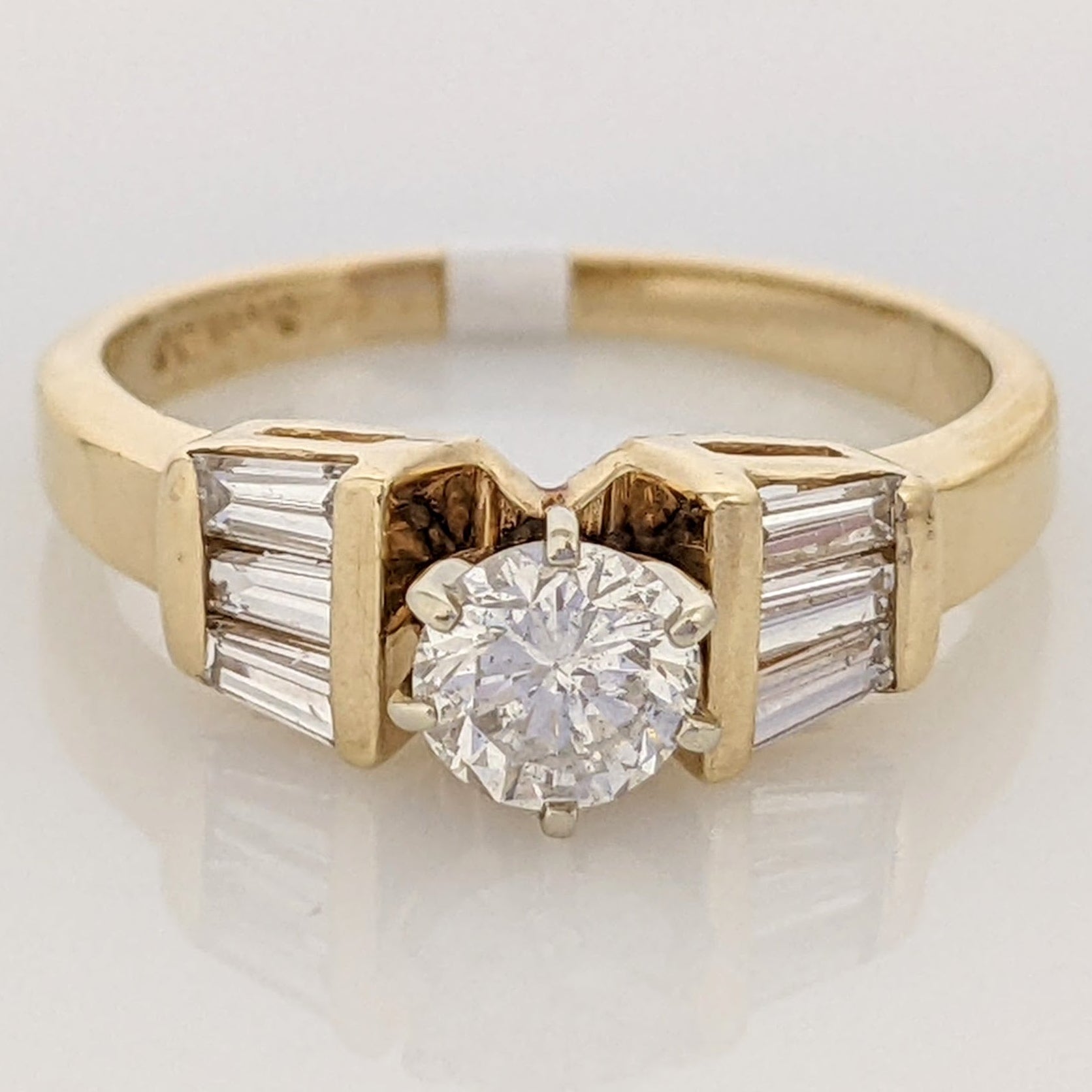 14K .71 CARAT TOTAL WEIGHT I1 J DIAMOND ROUND WITH (6) BAGUETTE CUT ESTATE RING 2.6 GRAMS