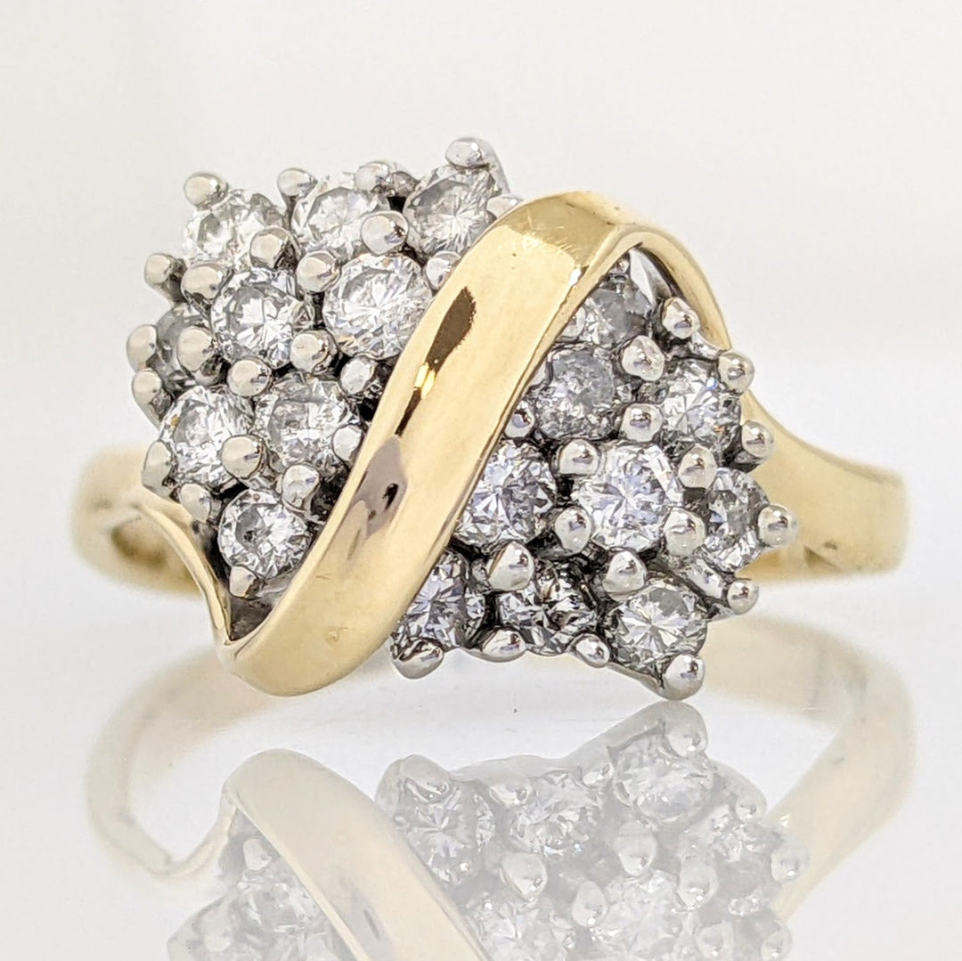 14K .54 CARAT TOTAL WEIGHT I1 G DIAMOND ROUND (18) CLUSTER ESTATE RING 2.7 GRAMS