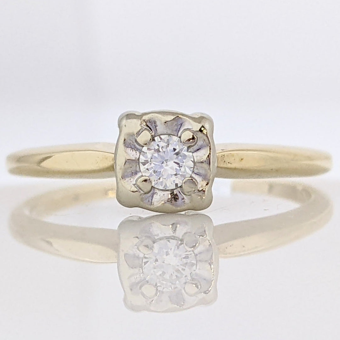 14K .10 CARAT TOTAL SI1 I ROUND DIAMOND ILLUSION HEAD SOLITAIRE ESTATE RING 2.0 GRAMS