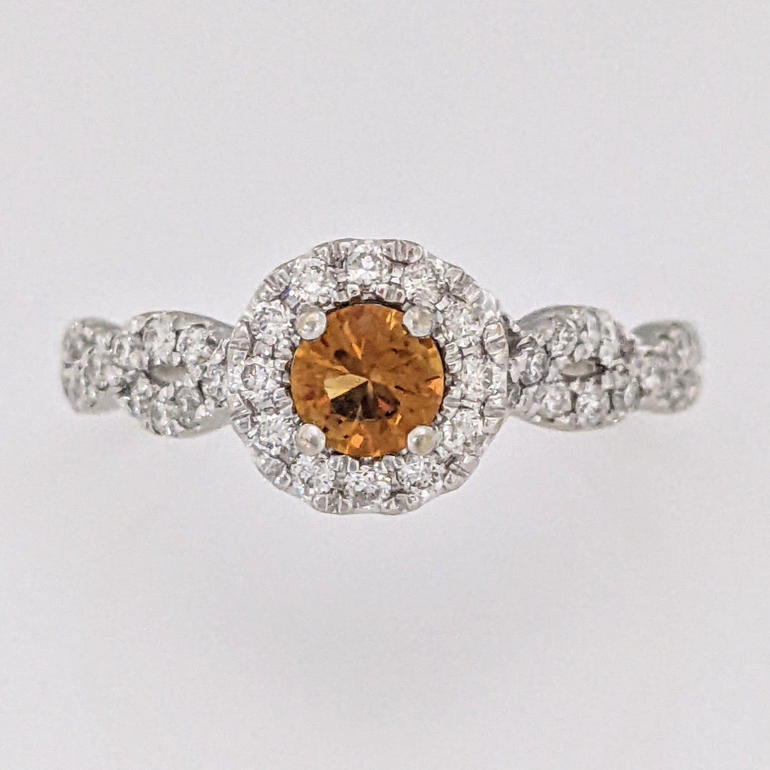 14K WHITE CITRINE ROUND 4.5MM WITH .50 DIAMOND TOTAL WEIGHT HALO ESTATE RING 3.4 GRAMS