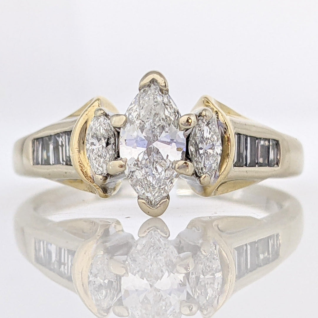 Marquise cut stone rings are elegant and eye-catching pieces of jewelry that showcase a unique and elongated gemstone shape. The marquise cut, also known as the navette cut, features a pointed oval shape with rounded ends. This distinctive shape gives the illusion of a larger stone, making marquise cut stone rings a popular choice for those who desire a striking and impactful look. The gemstone is typically set with prongs or a bezel to secure it in place while allowing maximum light reflection for optimal sparkle. Marquise cut stone rings are available with various gemstones, such as diamonds, emeralds, or sapphires, offering a range of options to suit personal style and preference. With their timeless and elongated design, marquise cut stone rings make a sophisticated statement and add a touch of glamour to any outfit.