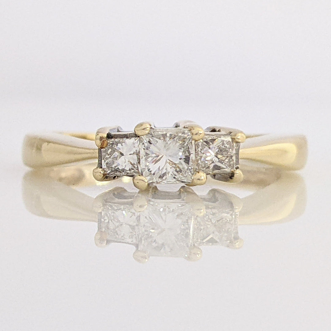 14K .53 CARAT TOTAL WEIGHT I1 H DIAMOND PRINCESS CUT (3) TRINITY ESTATE RING 3.2 GRAMS