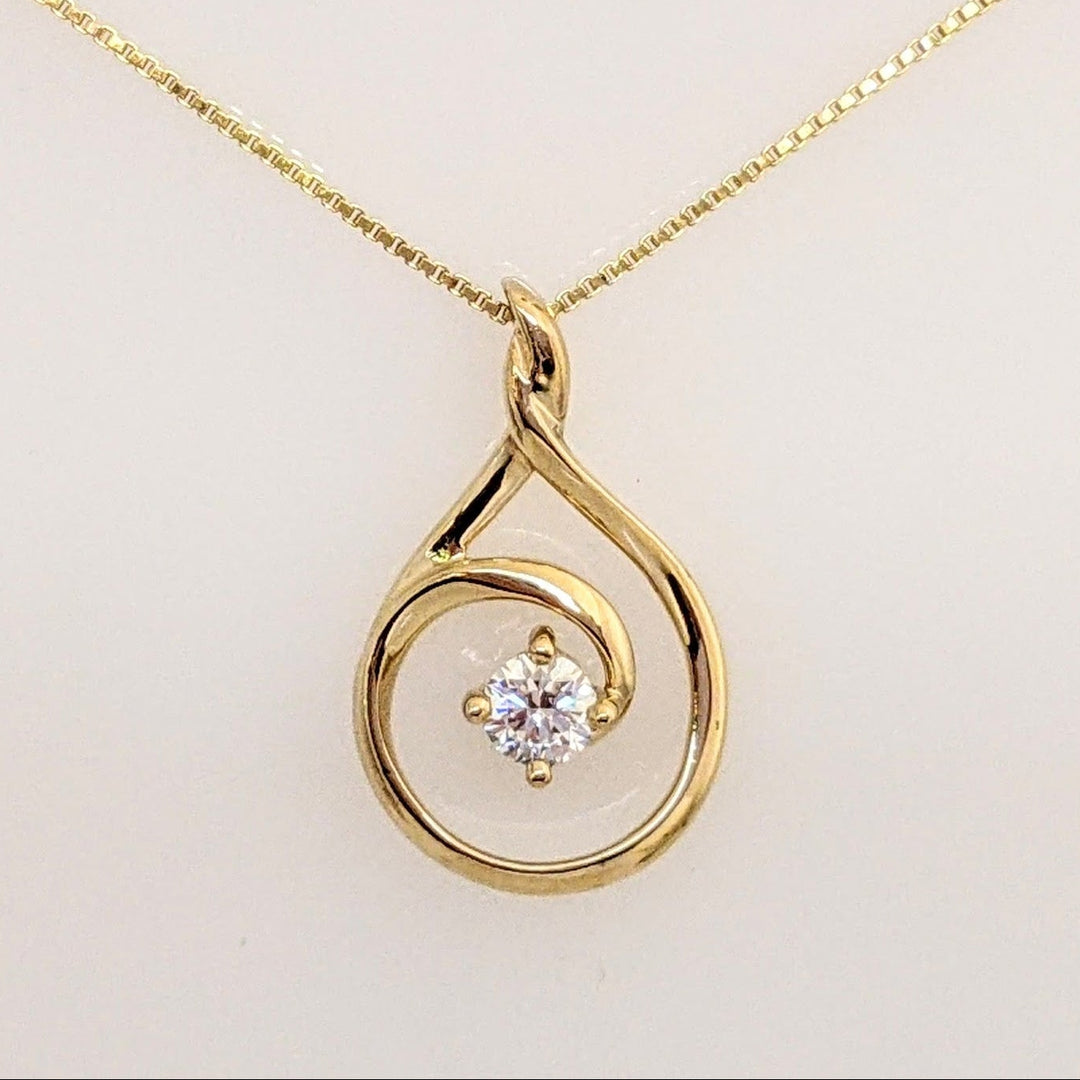 14K .14 CARAT TOTAL SI2 I DIAMOND ROUND TWIST TOP ESTATE PENDANT & CHAIN 2.4 GRAMS