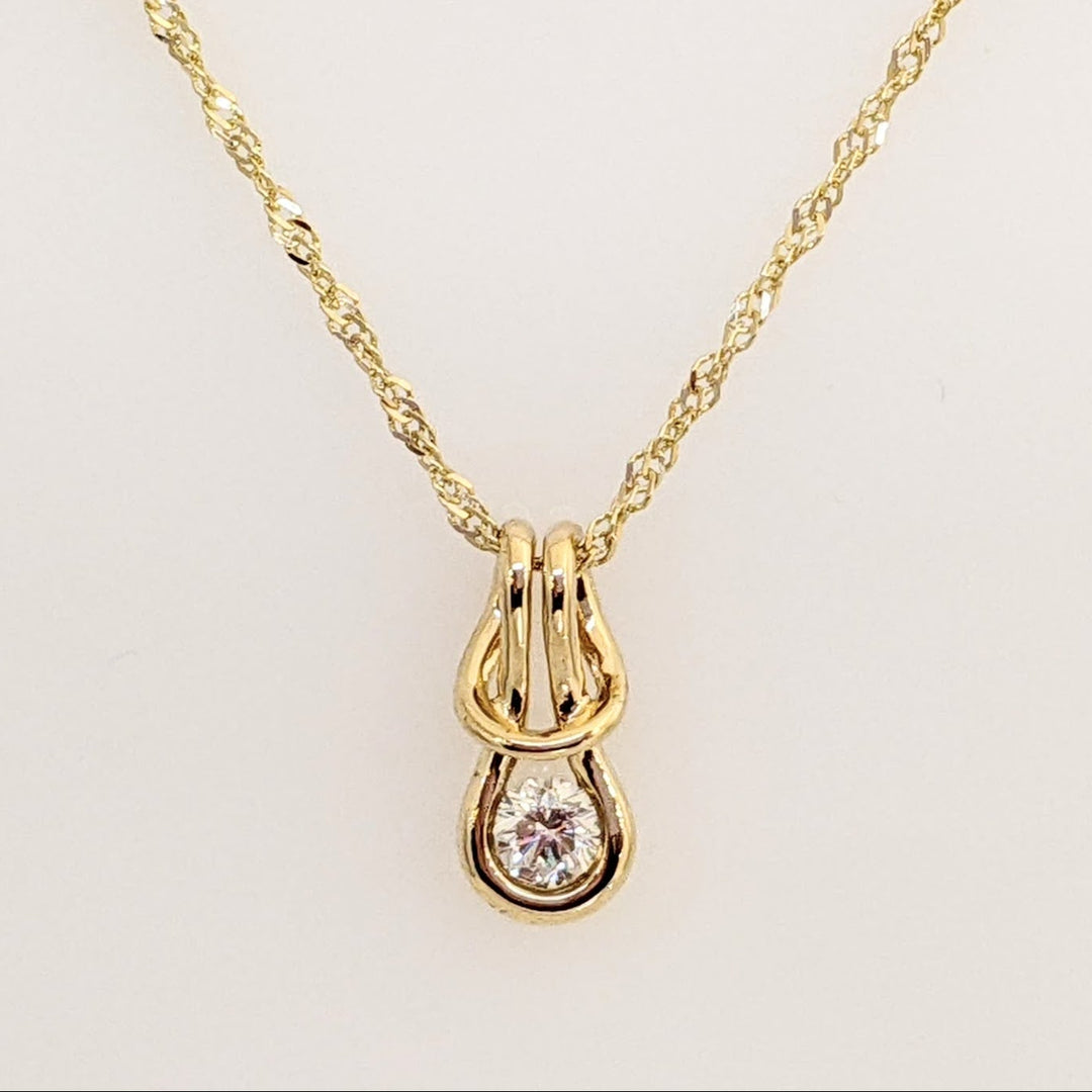 14K .16 CARAT TOTAL VS1 I DIAMOND ROUND LOVE KNOT ESTATE PENDANT & CHAIN 1.9 GRAMS
