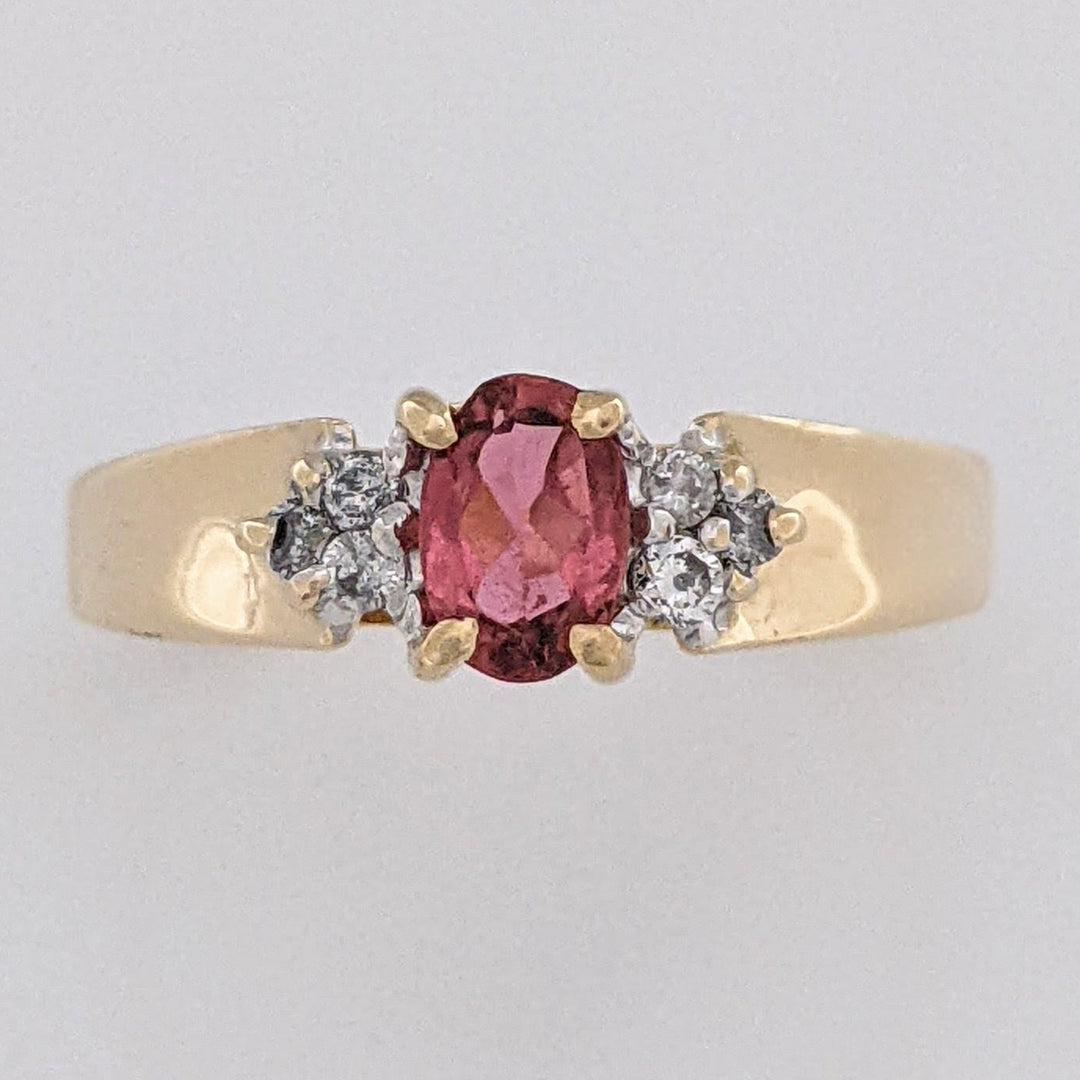 14K PINK TOURMALINE OVAL 4X6 WITH .15 DIAMOND TOTAL WEIGHT ESTATE RING 3.4 GRAMS