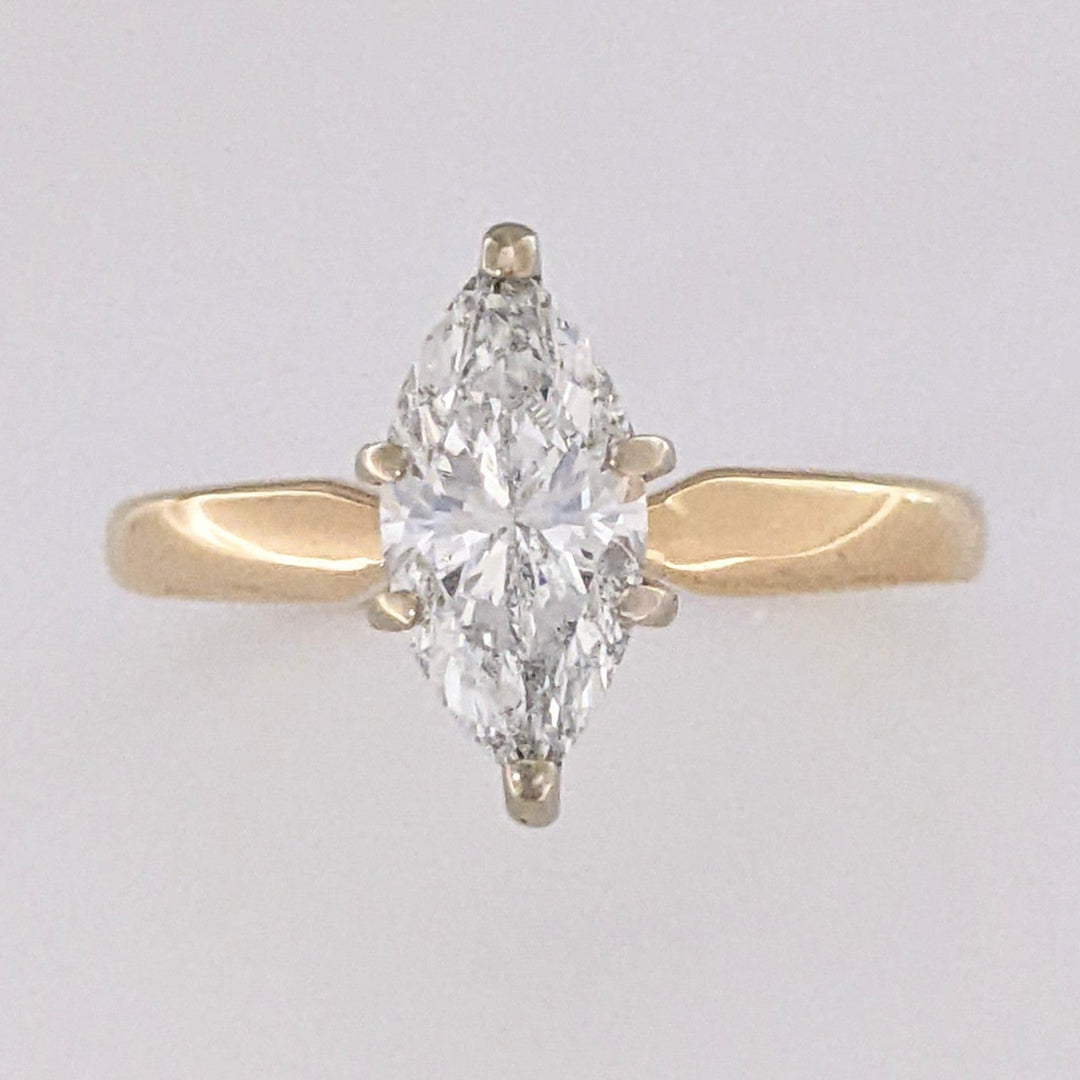 14K 1.06 CARAT TOTAL WEIGHT SI2 G DIAMOND MARQUISE ESTATE SOLITAIRE RING 2.8 GRAMS