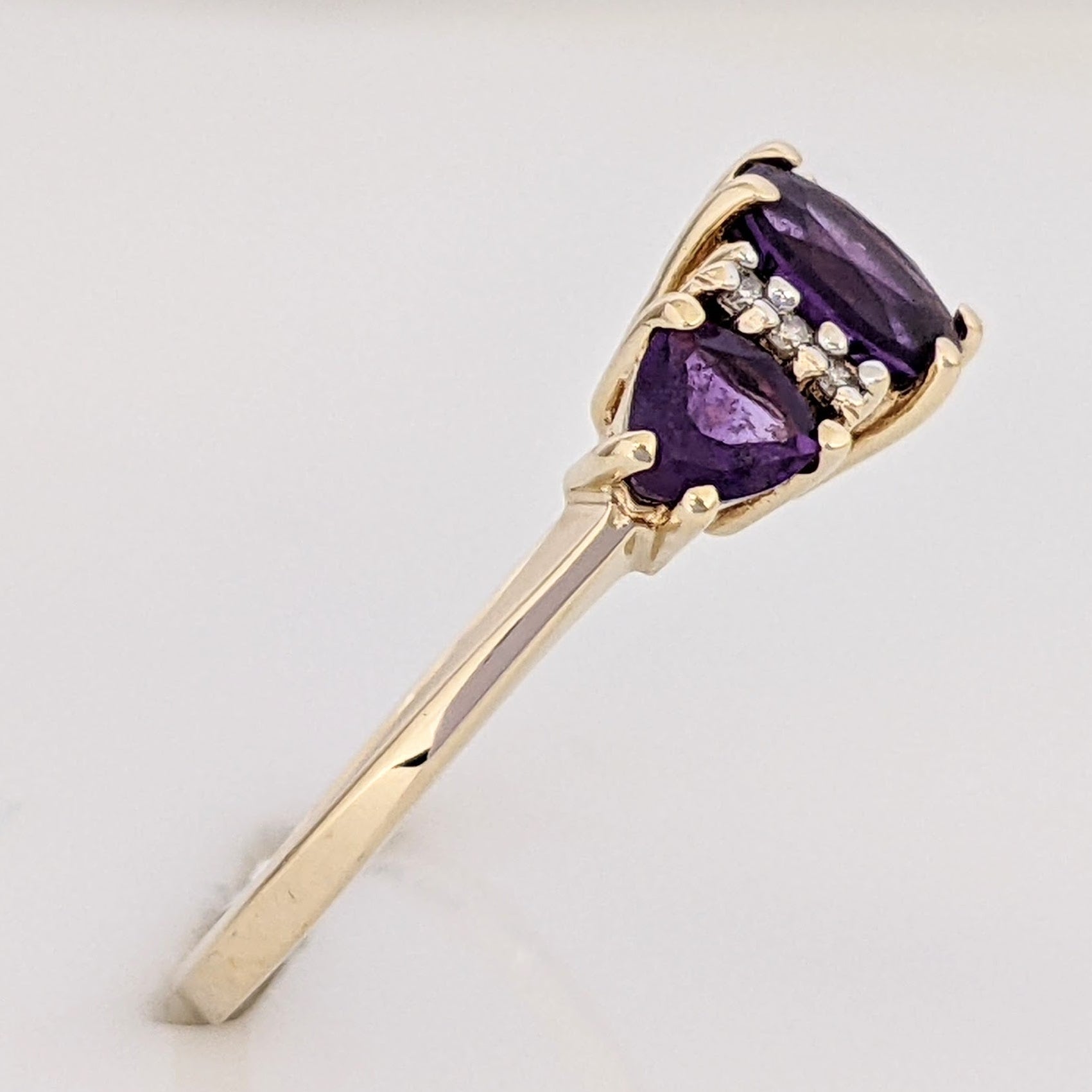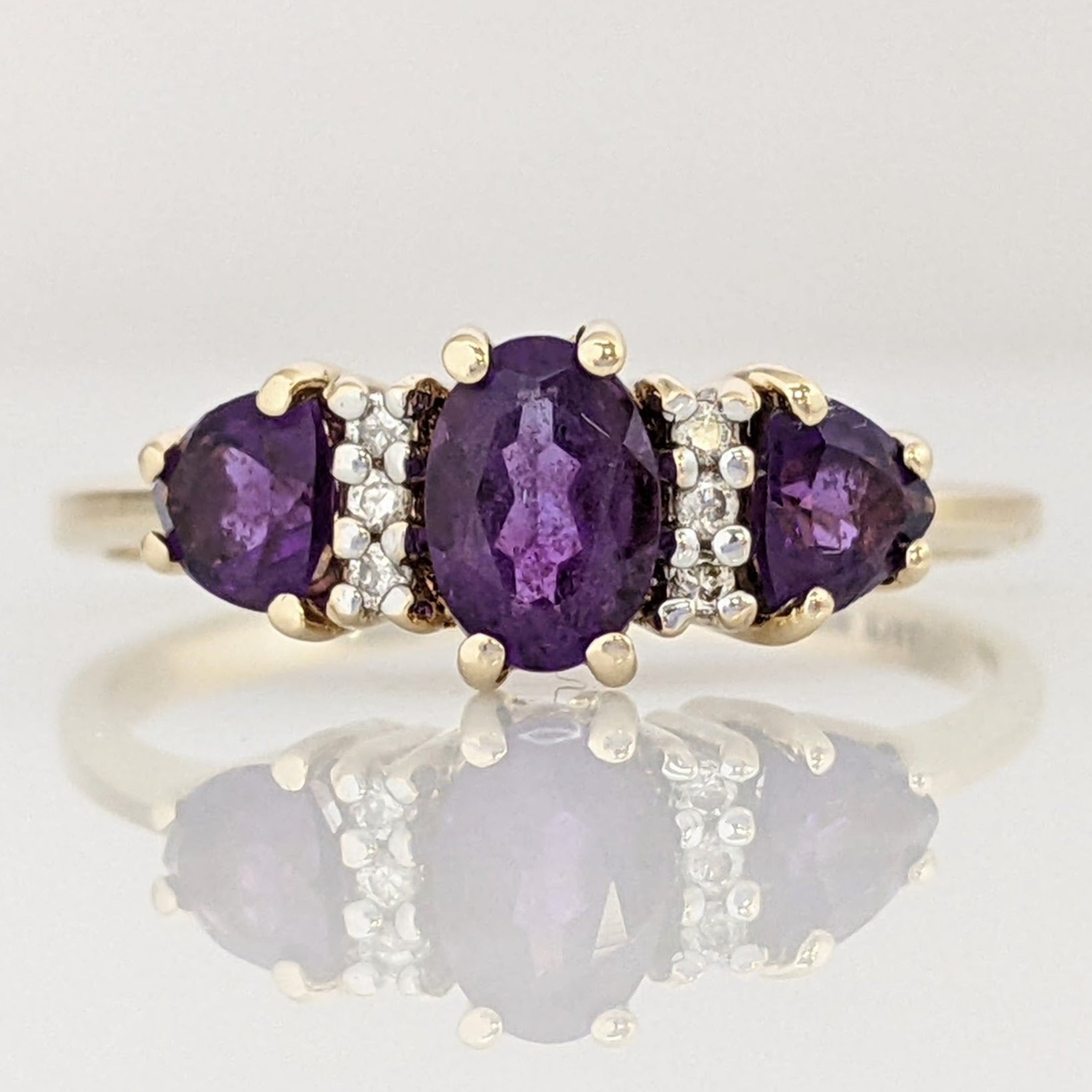 10K AMETHYST OVAL 4X6 WITH (2) TRILLION 4MM WITH (6) MELEE ESTATE RING 1.9 GRAMS