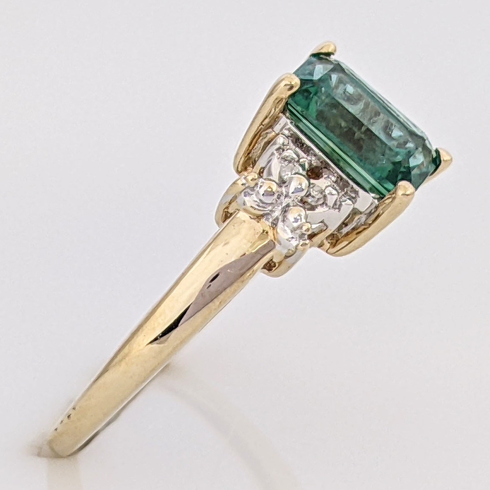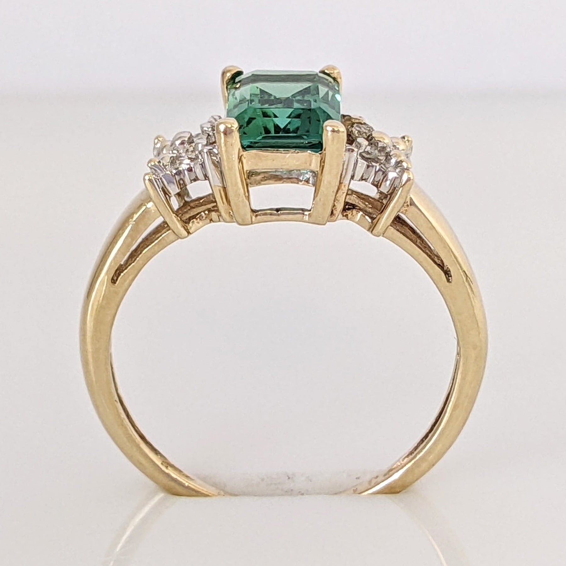 10K LAB-CREATED EMERALD CUT EMERALD 5X7 WITH (4) MELEE ESTATE RING 1.6 GRAMS
