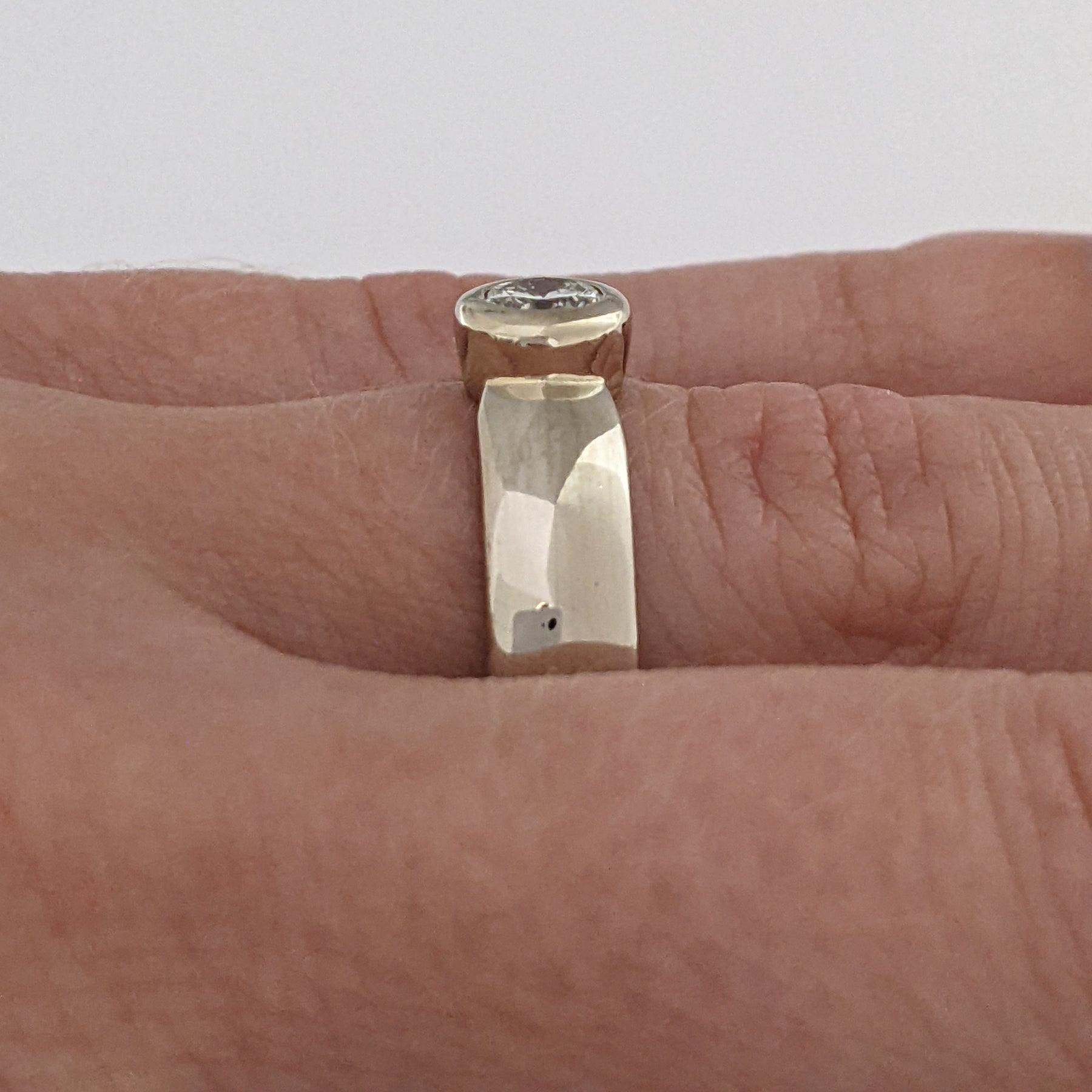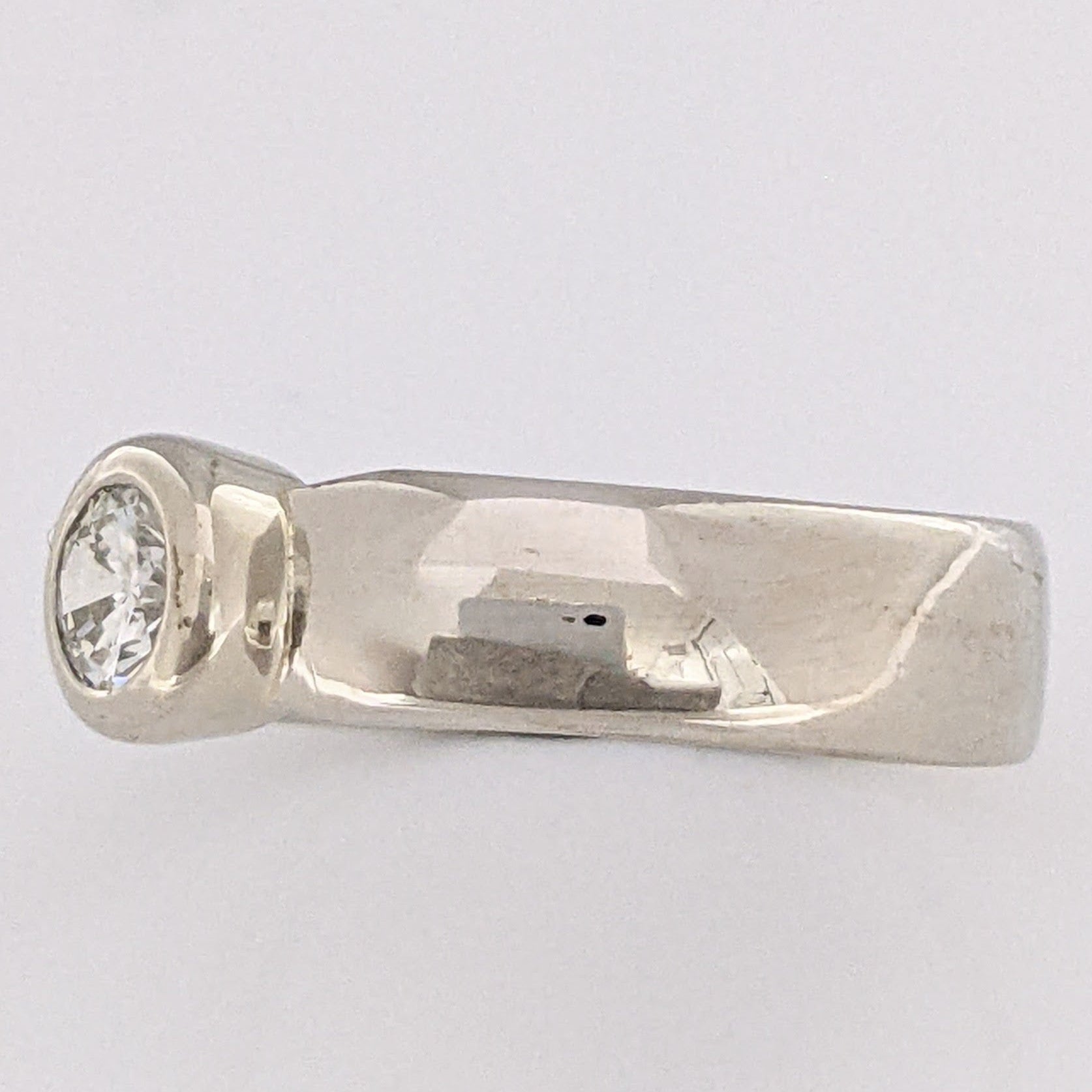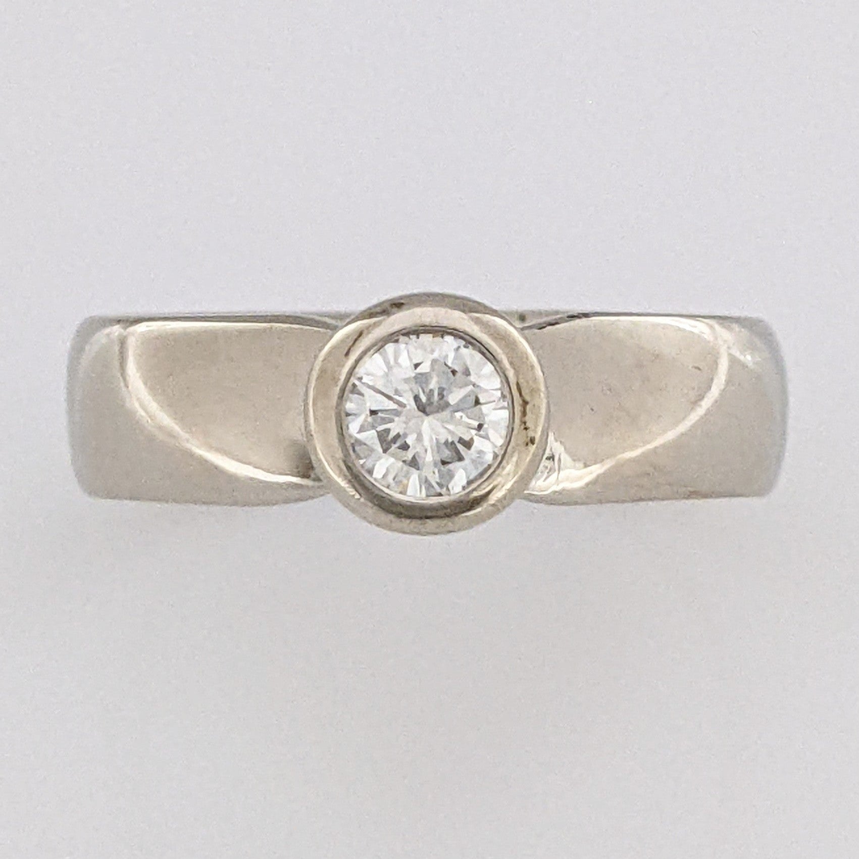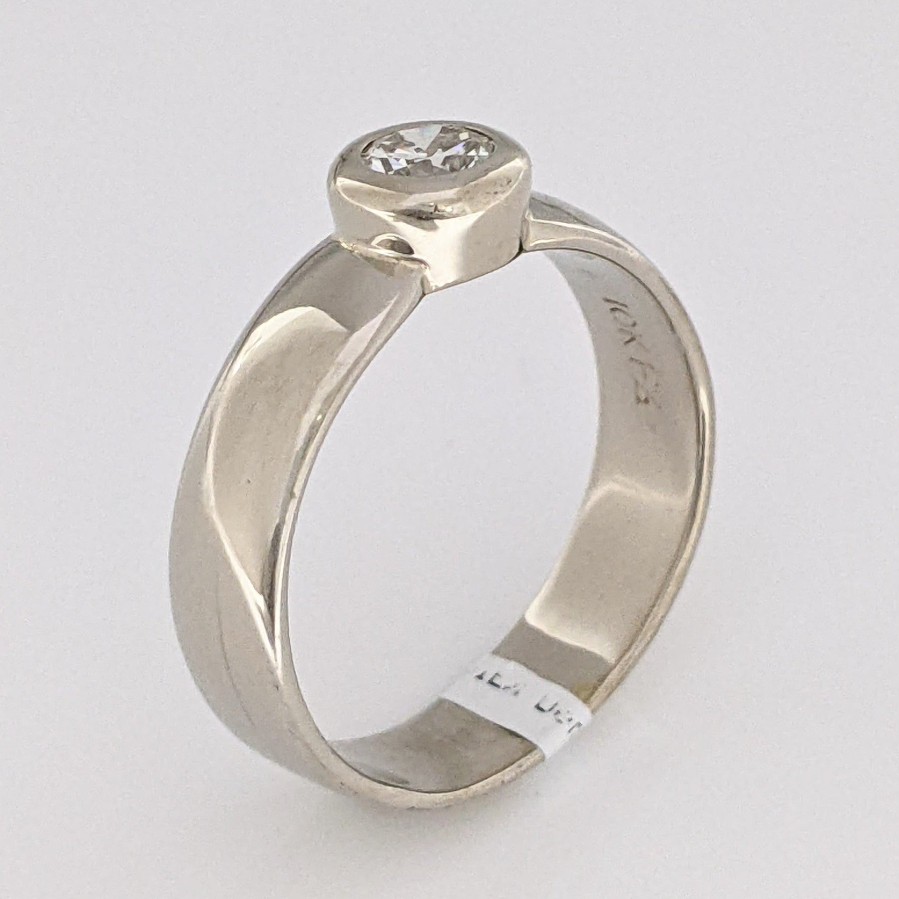 10K WHITE .34 CARAT TOTAL SI1 I DIAMOND ROUND BEZEL SET ESTATE RING 4.3 GRAMS