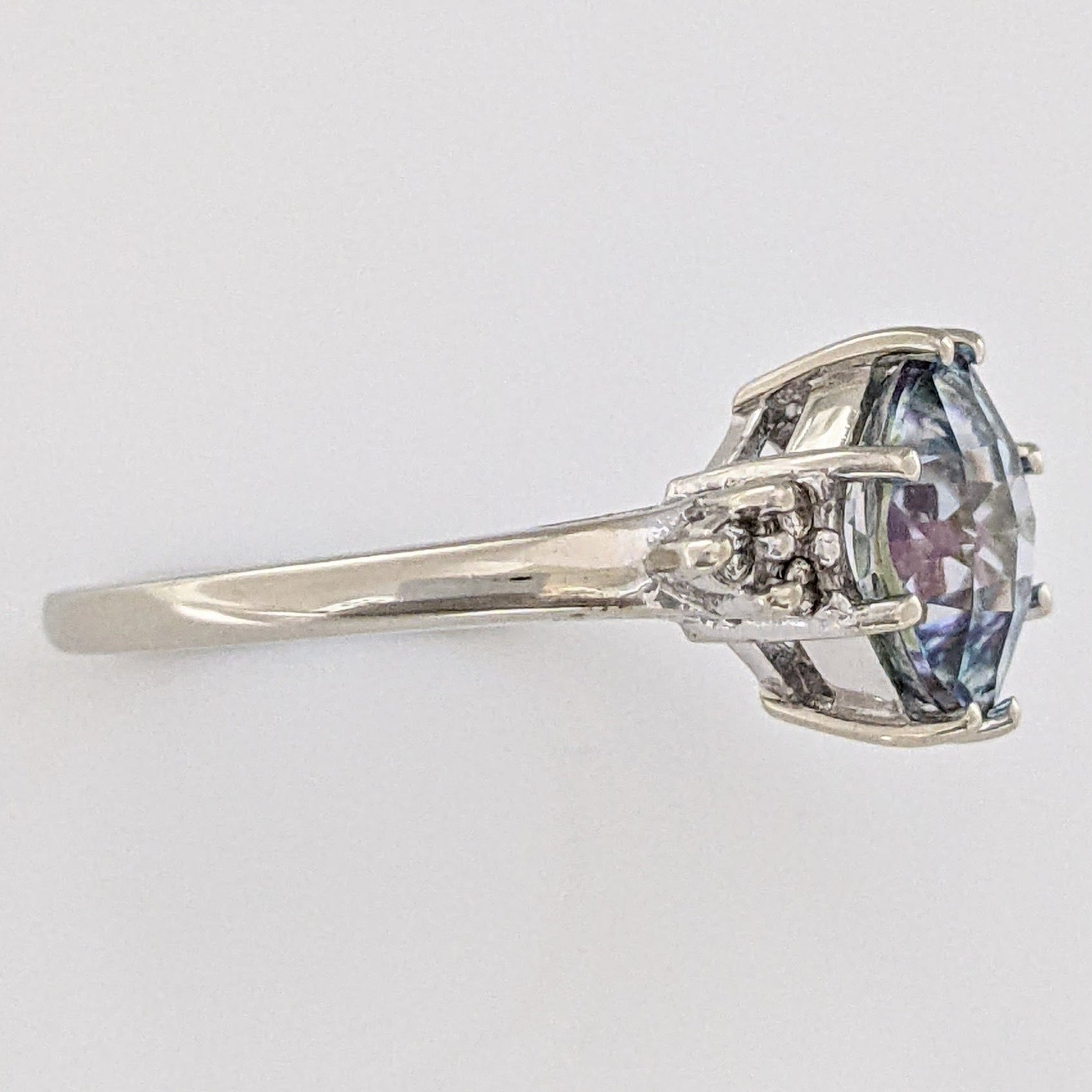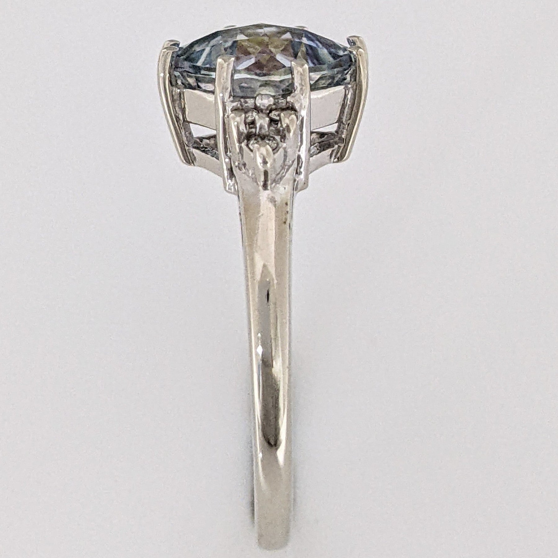 10K WHITE MYSTIC TOPAZ CUSHION CUT 8MM WITH (6) MELEE ESTATE RING 2.9 GRAMS