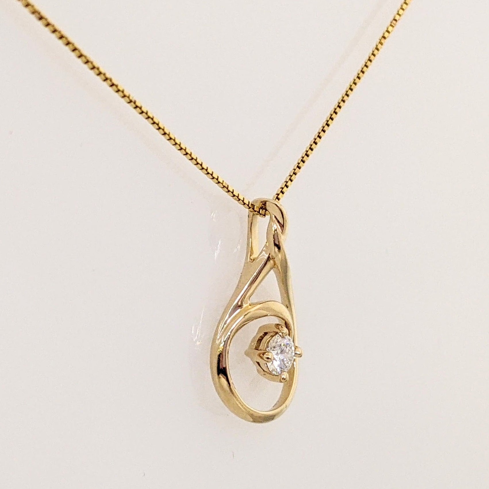 14K .14 CARAT TOTAL SI2 I DIAMOND ROUND TWIST TOP ESTATE PENDANT & CHAIN 2.4 GRAMS