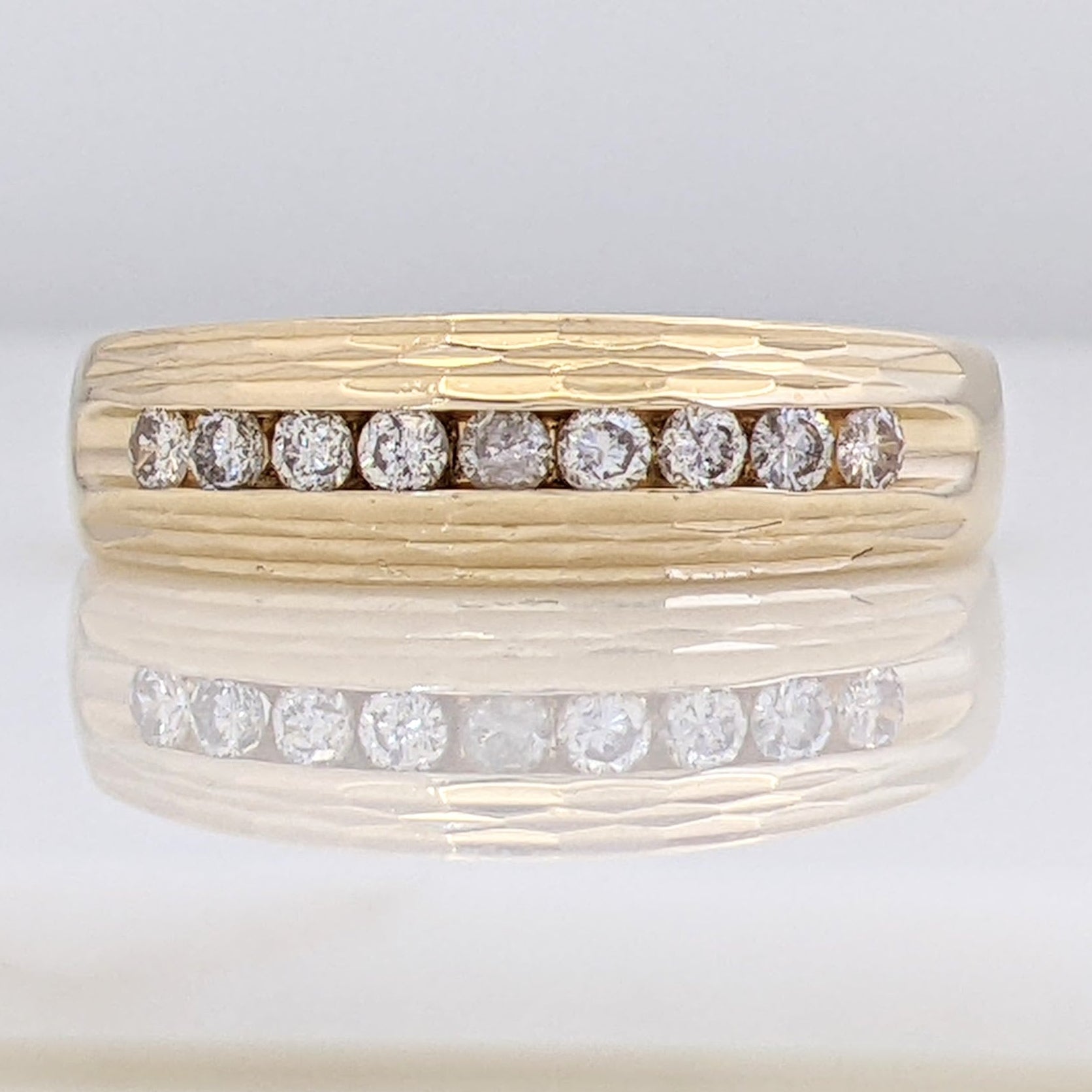 14K .38 CARAT TOTAL WEIGHT I1 I DIAMOND ROUND (9) ESTATE CHANNEL BAND 5.8 GRAMS