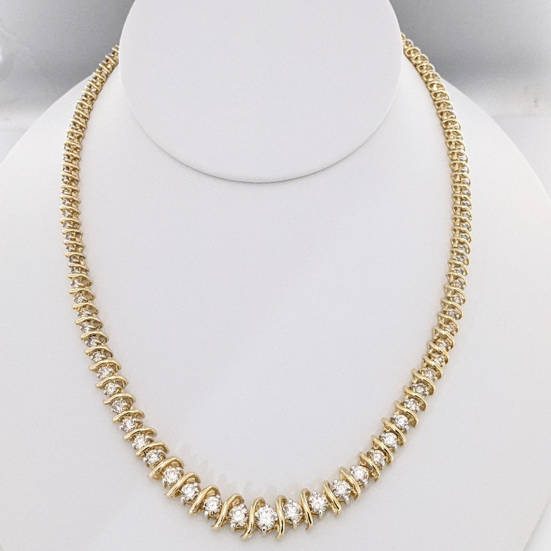 14K 8.85 CARAT TOTAL WEIGHT I1-I2 H-I DIAMOND ROUND (106) ESTATE S-LINK NECKLACE 39.4 GRAMS