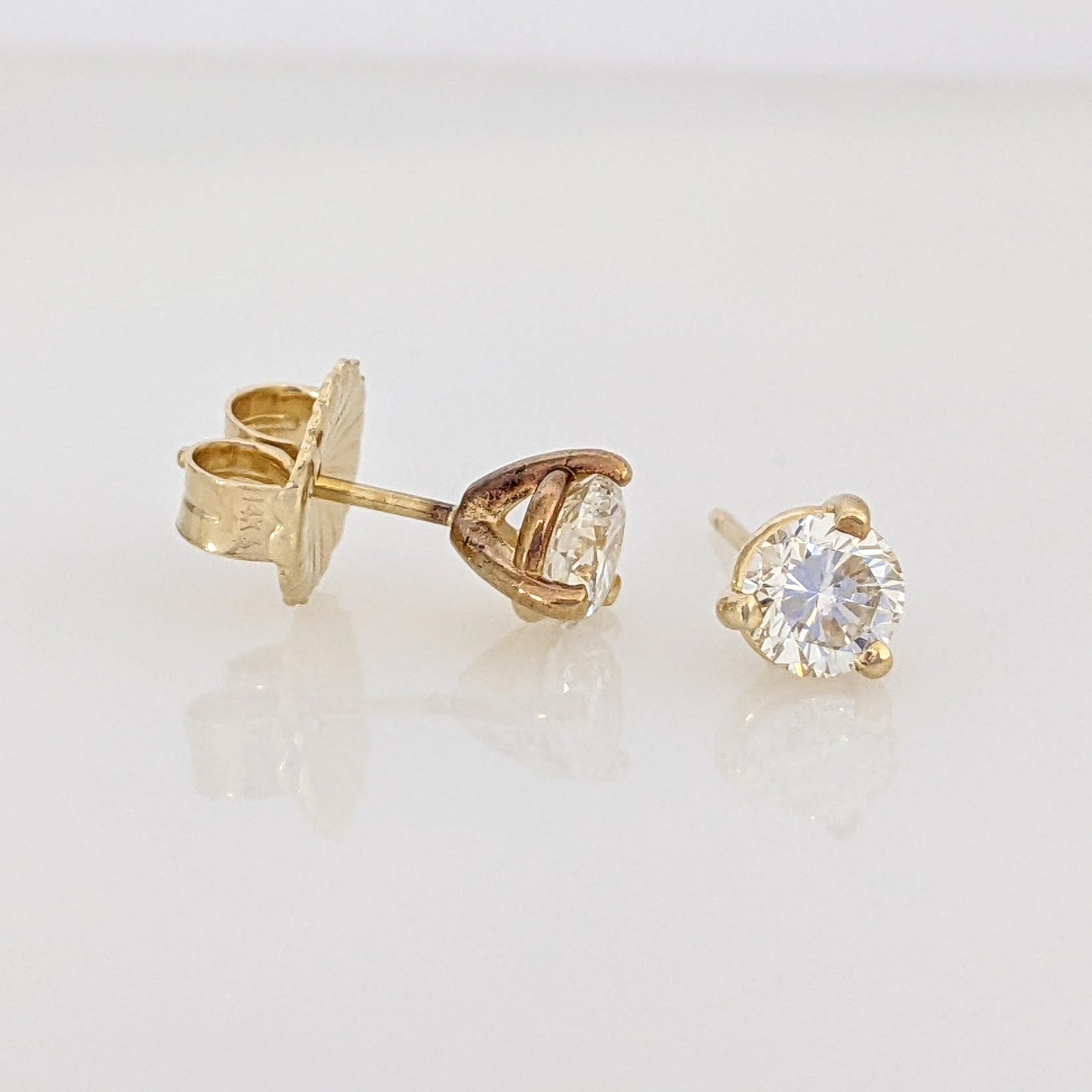 14K .97 CARAT TOTAL WEIGHT VS-SI1 L DIAMOND ROUND MARTINI-SET ESTATE STUD EARRINGS 1.6 GRAMS