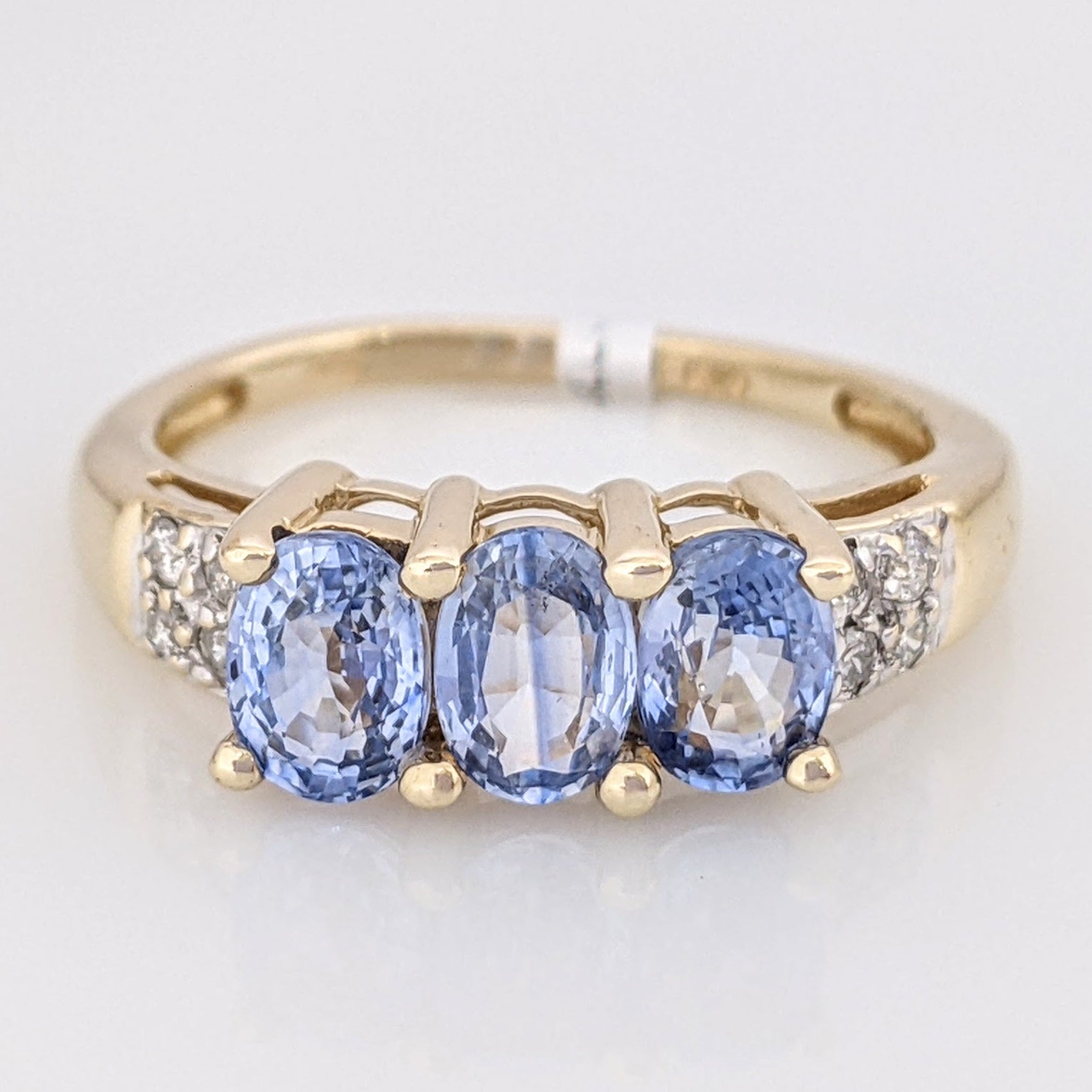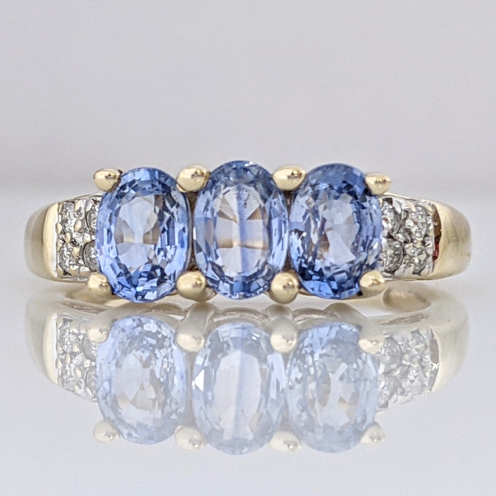 14K LAB-CREATED SAPPHIRE OVAL (3) 4X6 WITH (8) MELEE ESTATE RING 2.9 GRAMS