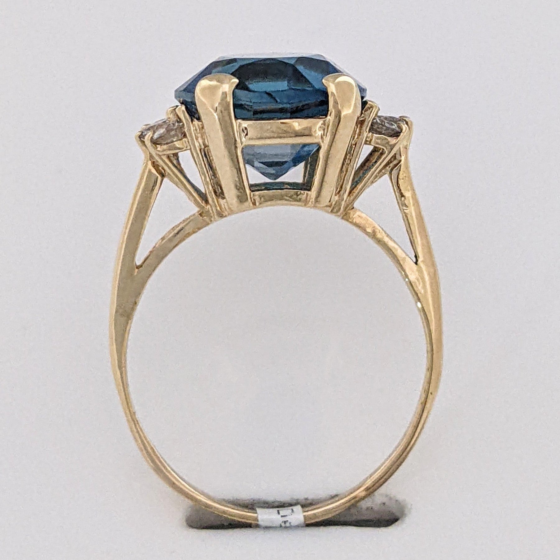 14K LONDON BLUE TOPAZ OVAL 10X12 WITH (6) MELEE ESTATE RING 3.3 GRAMS