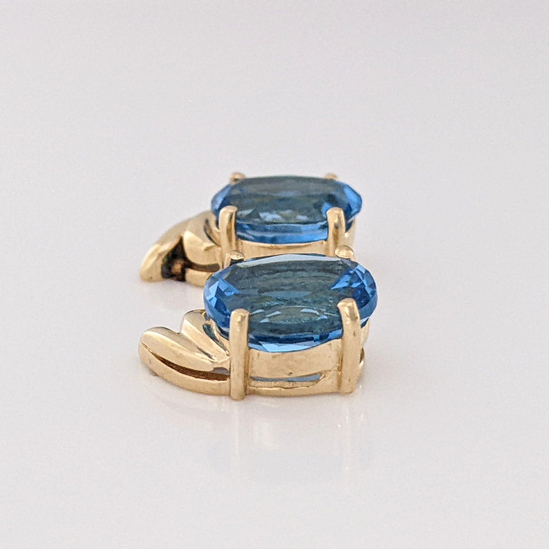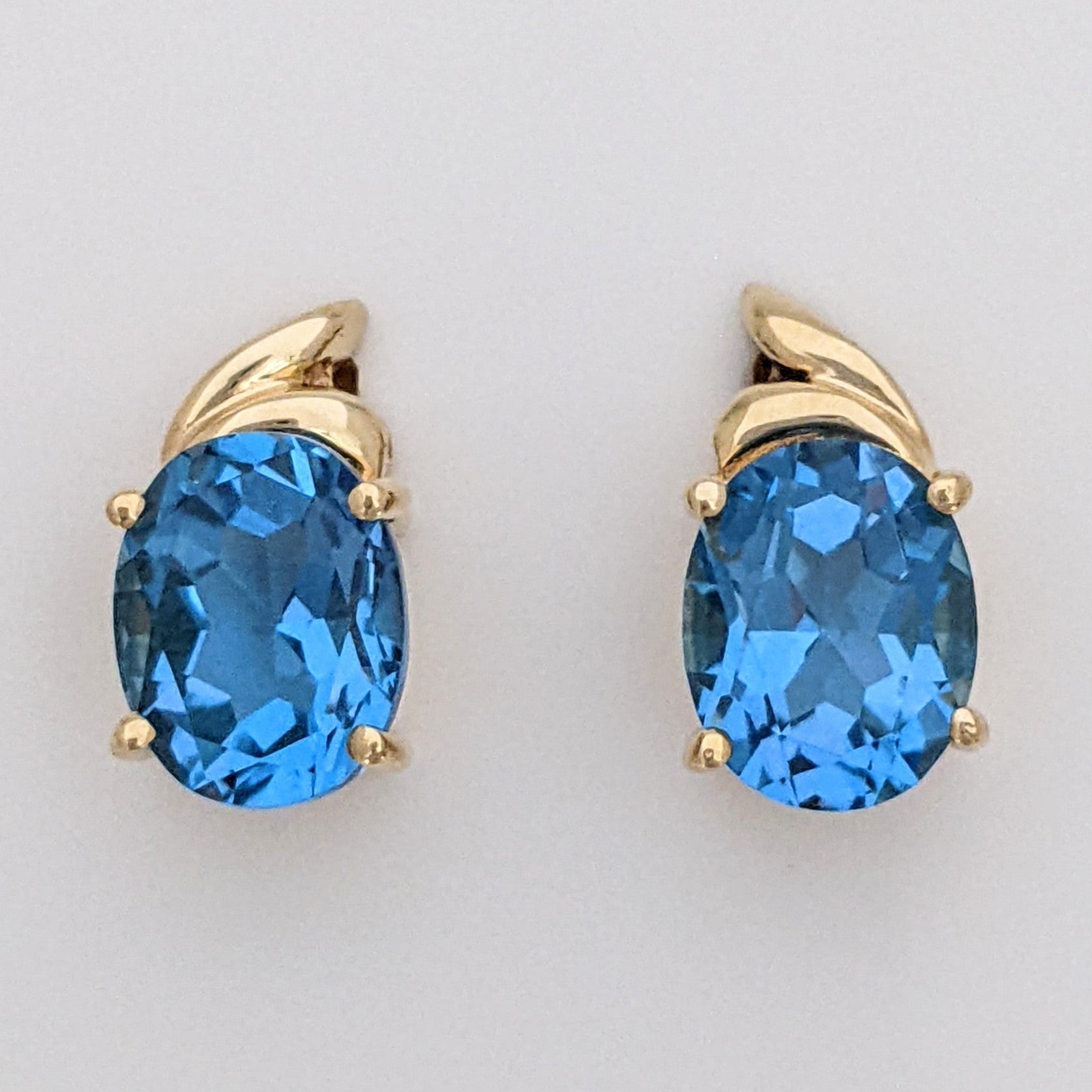 14K LONDON BLUE TOPAZ OVAL 7X9 ESTATE EARRINGS 3.3 GRAMS