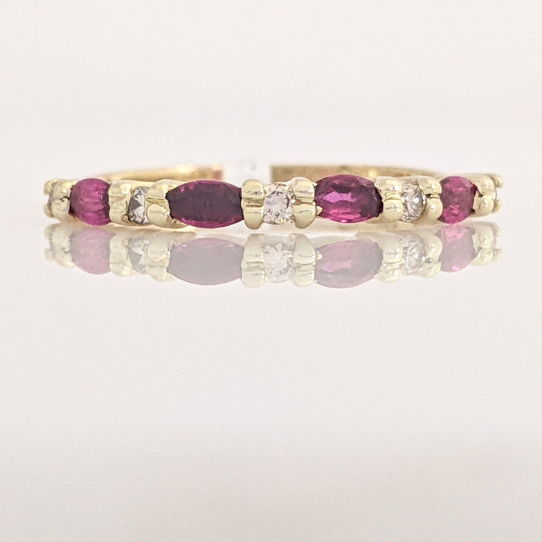 14K RUBY MARQUISE (4) 2X3 WITH (5) MELEE ESTATE BAND 1.5 GRAMS