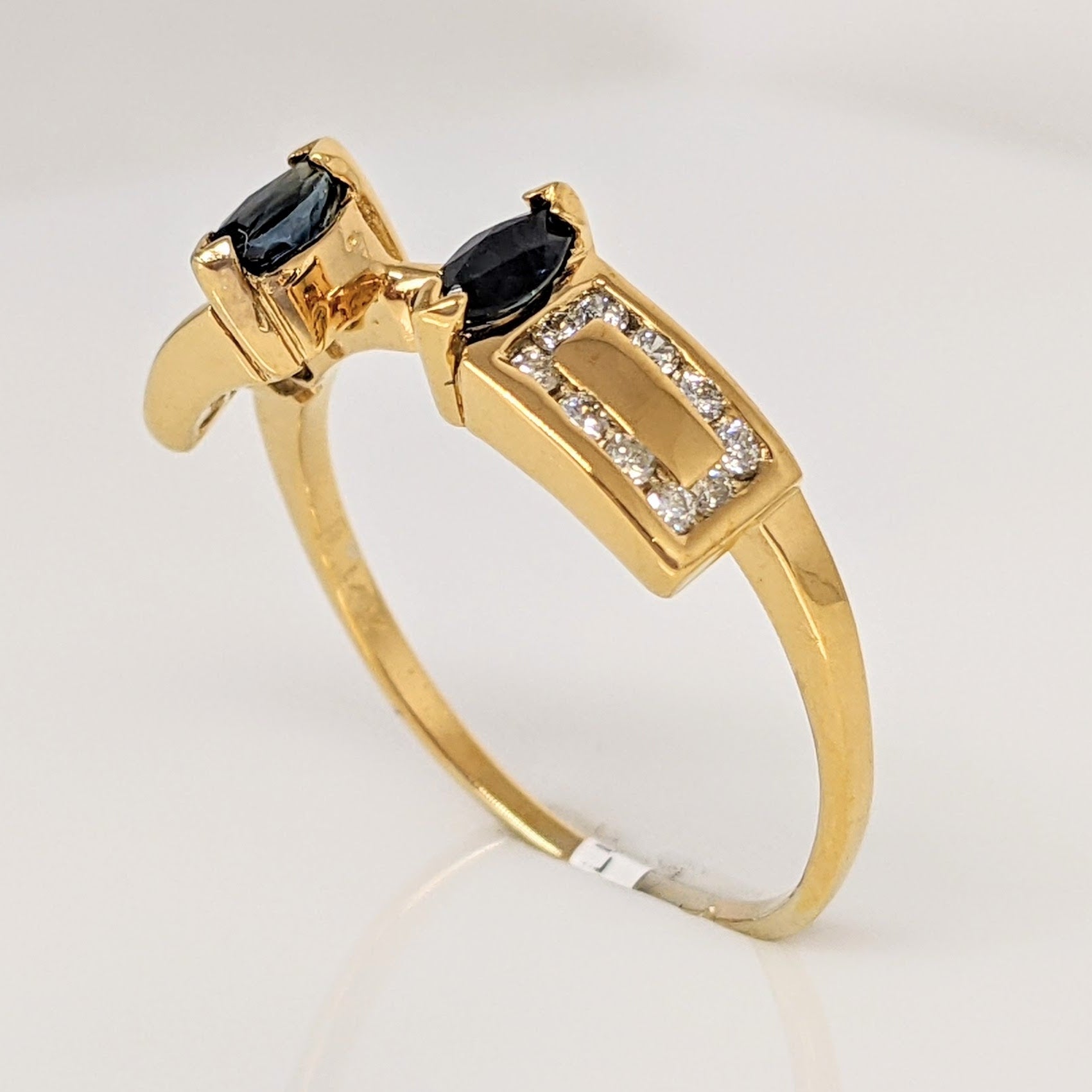 14K SAPPHIRE (2) MARQUISE .56 CARAT TOTAL WEIGHT (20) ROUND DIAMOND .25TW ESTATE WRAP 4.7 GRAMS