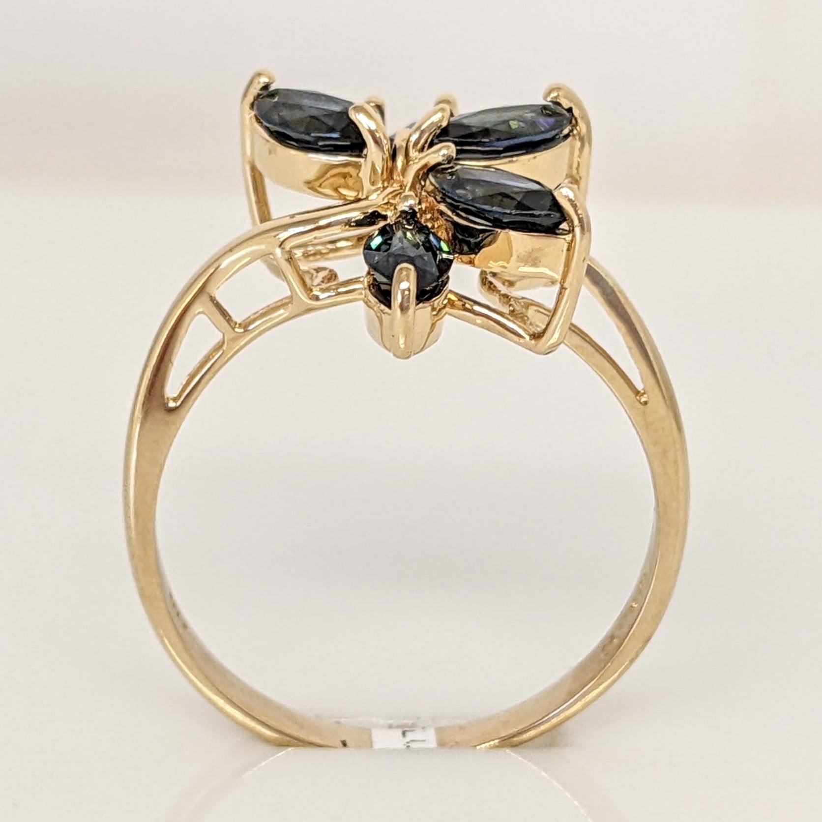 14K SAPPHIRE MARQUISE (5) 2.5X5 WITH MELEE ESTATE RING 2.9 GRAMS