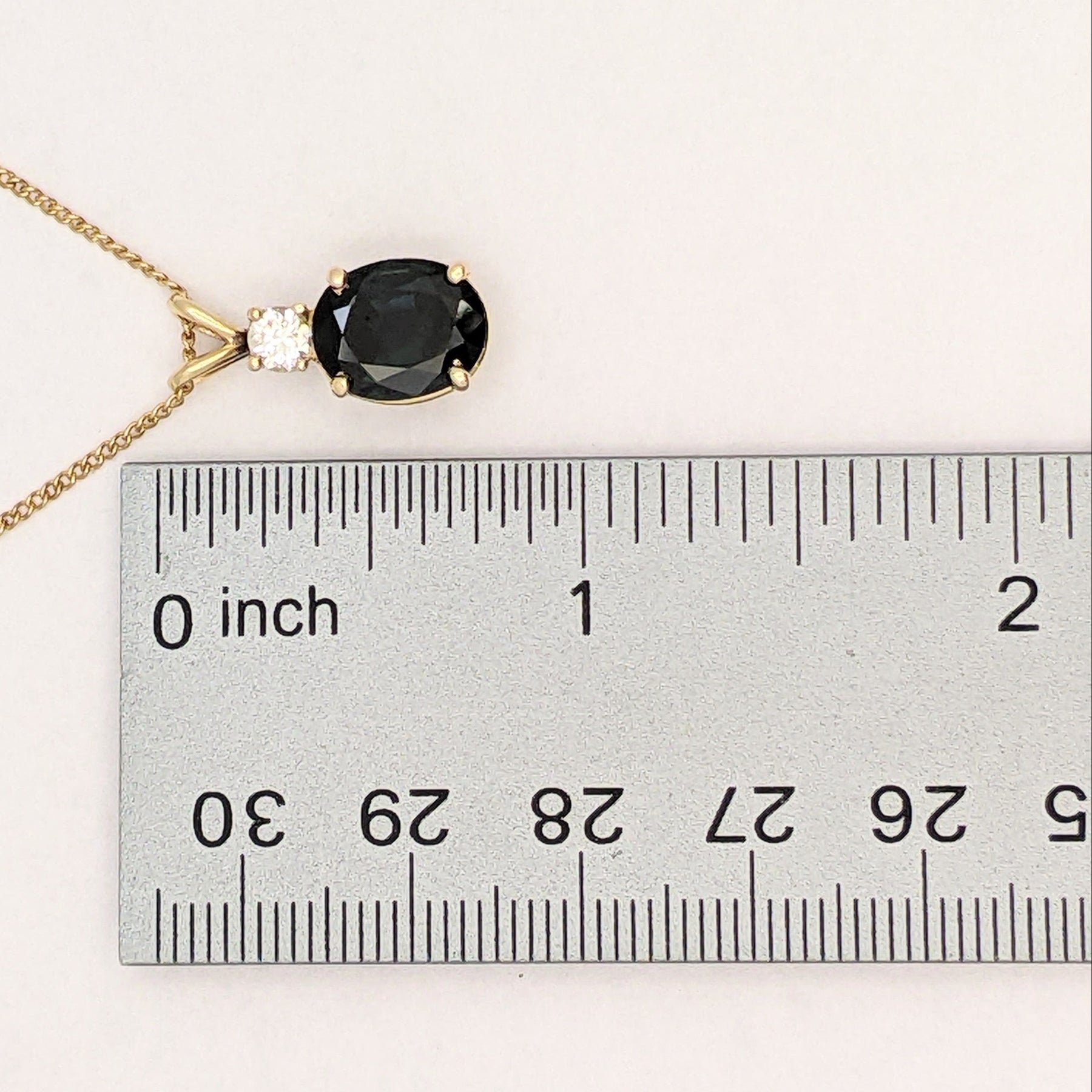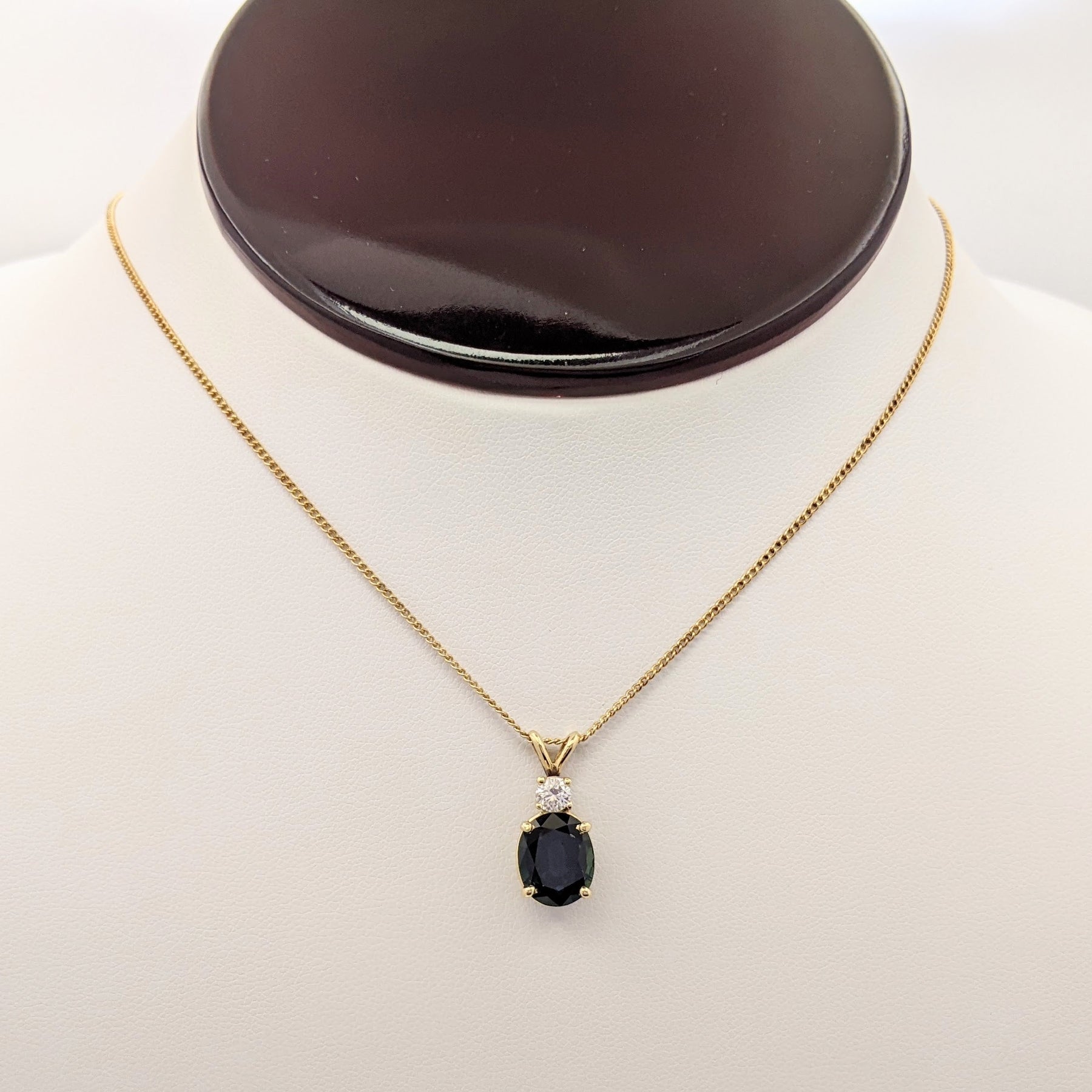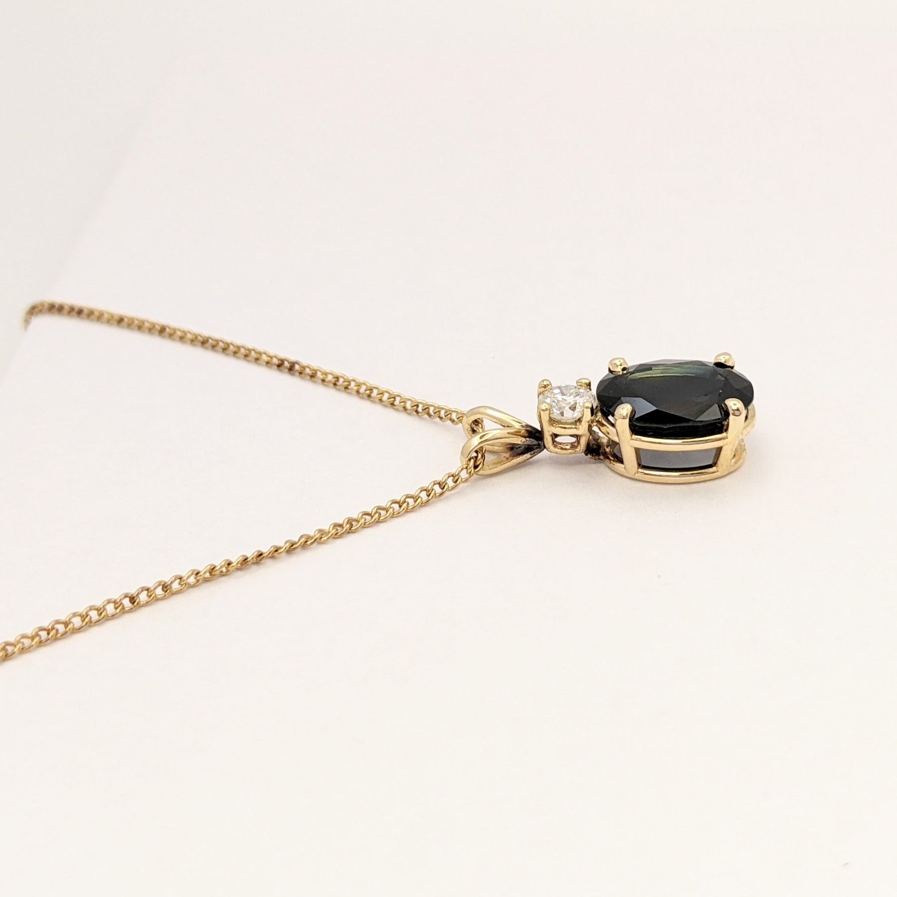 14K SAPPHIRE OVAL 8X10 WITH .25 DIAMOND TOTAL WEIGHT (1) ROUND ESTATE PENDANT & CHAIN 3.3 GRAMS