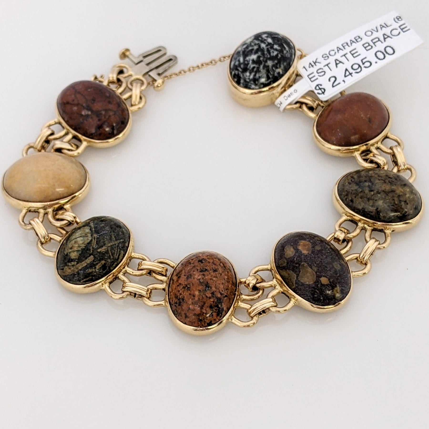 14K SCARAB OVAL (8) 12X15 ESTATE BRACELET 27.6 GRAMS