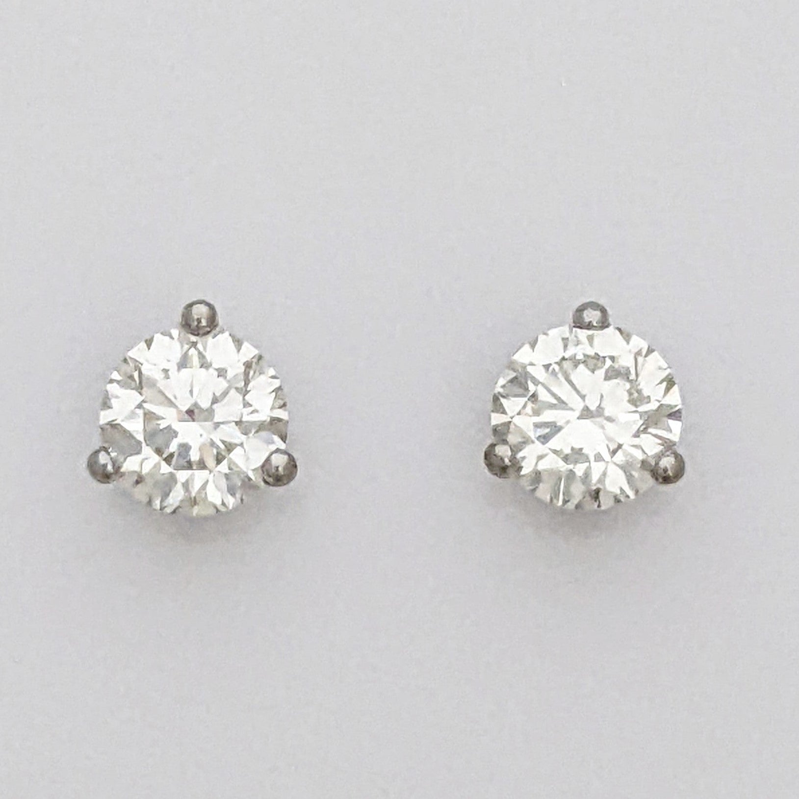 14K WHITE 1.44 CARAT TOTAL WEIGHT VS2 J-K DIAMOND ROUND (2) ESTATE MARTINI EARRINGS 1.2 GRAMS