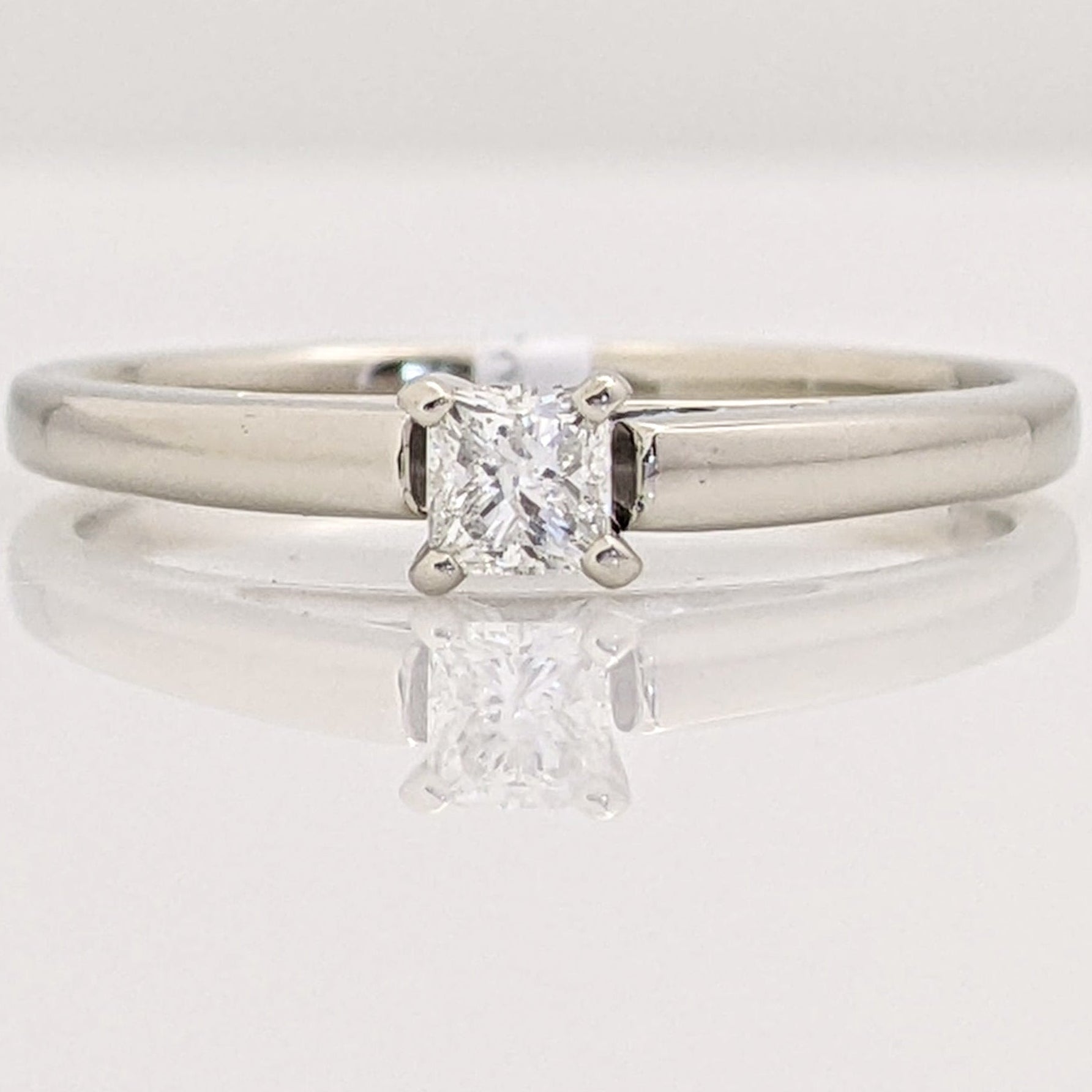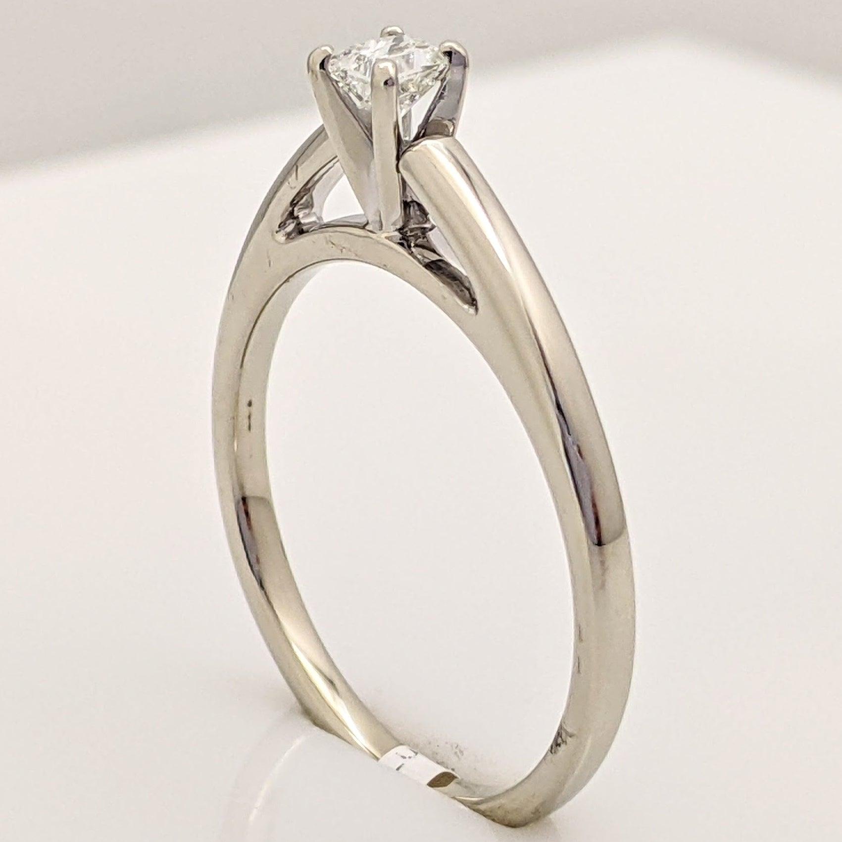 14K WHITE .20 CARAT TOTAL I1 H DIAMOND PRINCESS CUT RAISED SHOULDER ESTATE RING 2.7 GRAMS