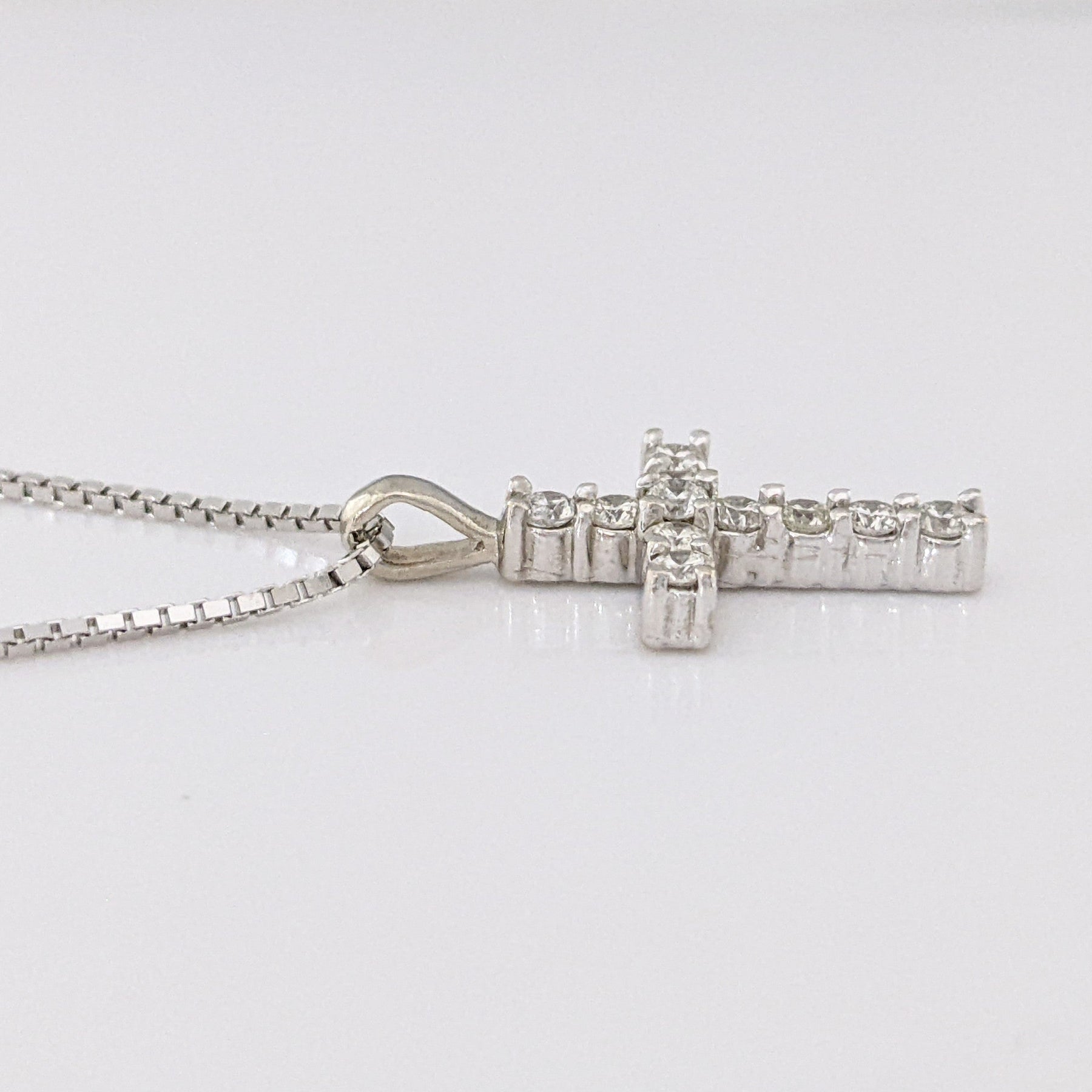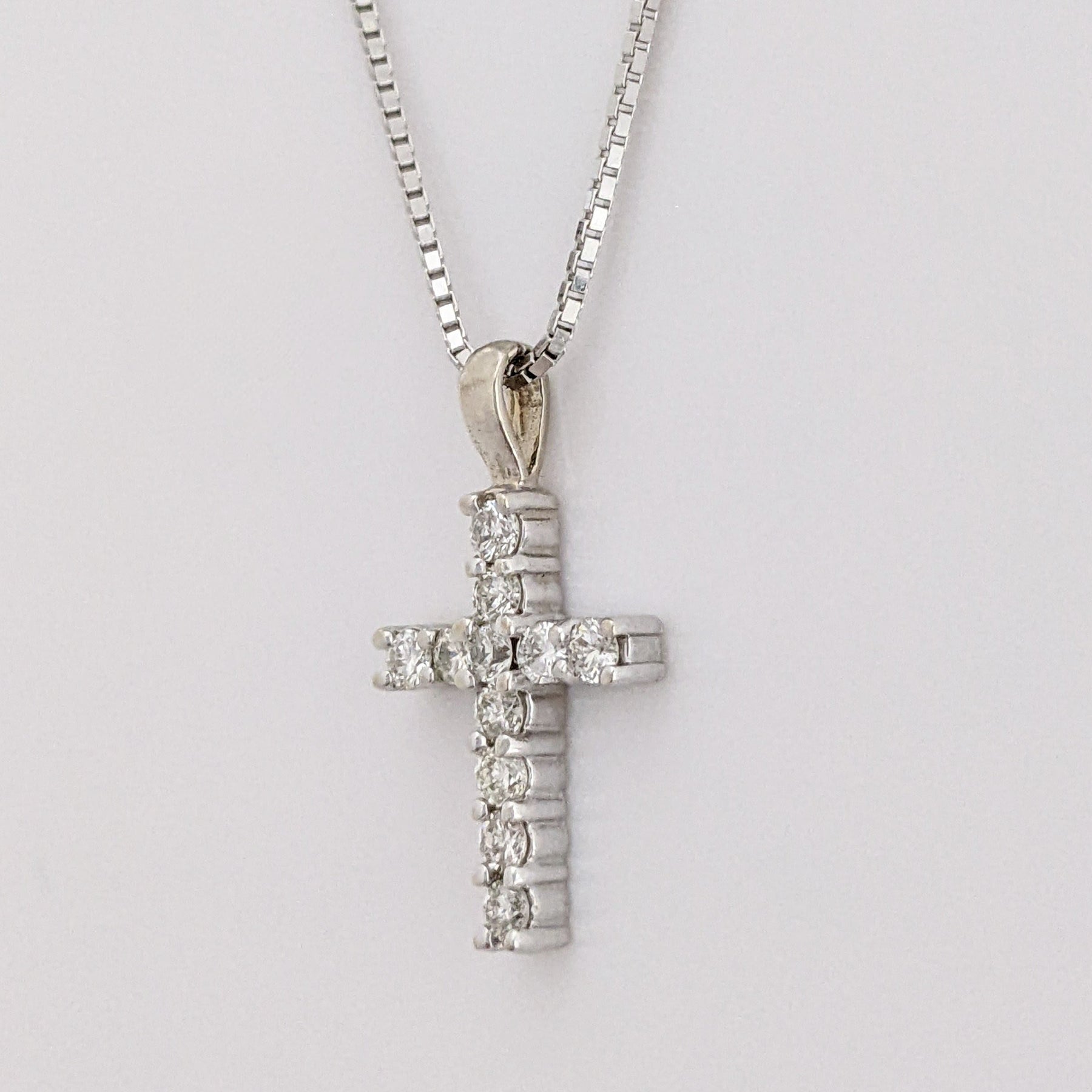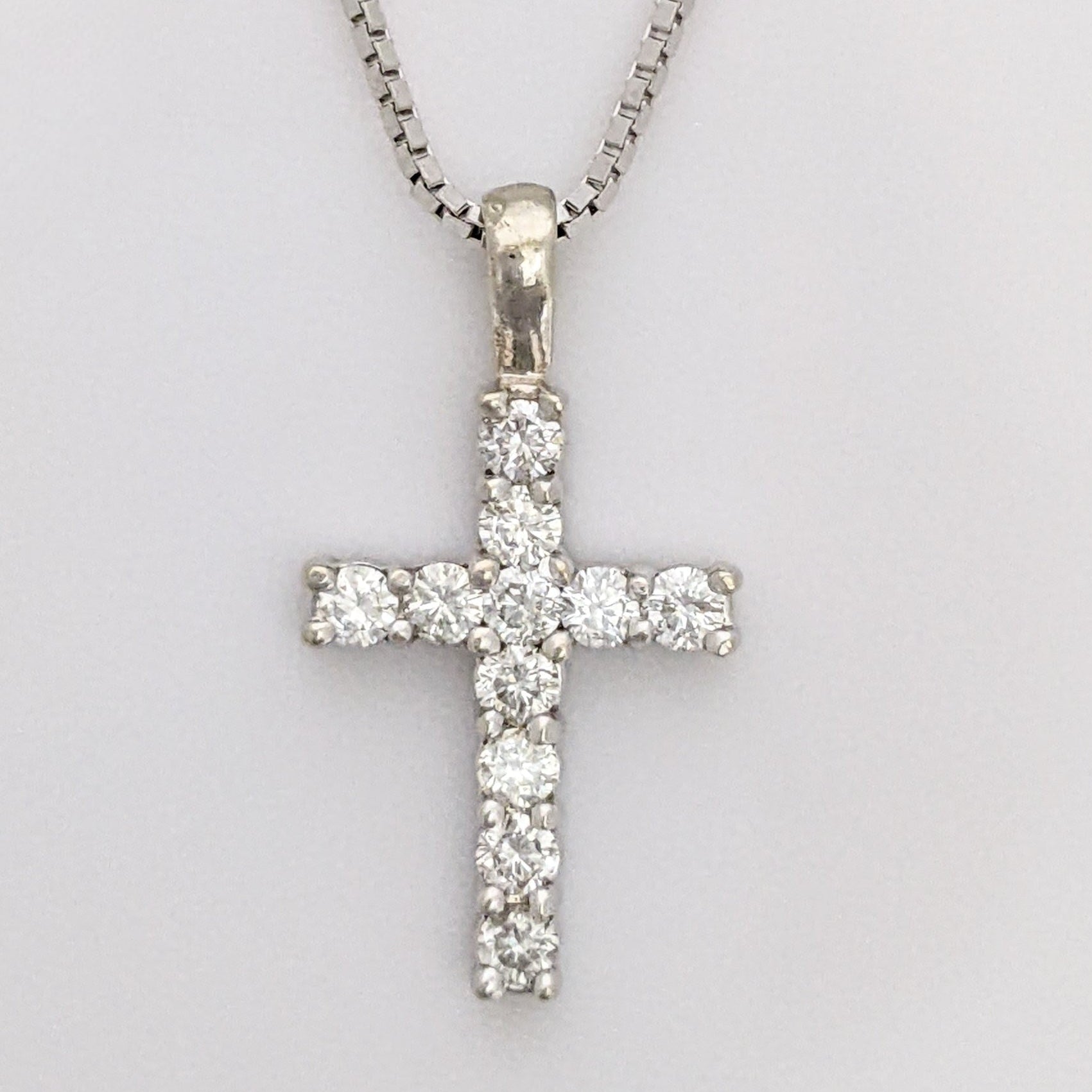 14K WHITE .44 CARAT TOTAL WEIGHT I1 I DIAMOND ROUND (11) ESTATE CROSS PENDANT & CHAIN 4.3 GRAMS