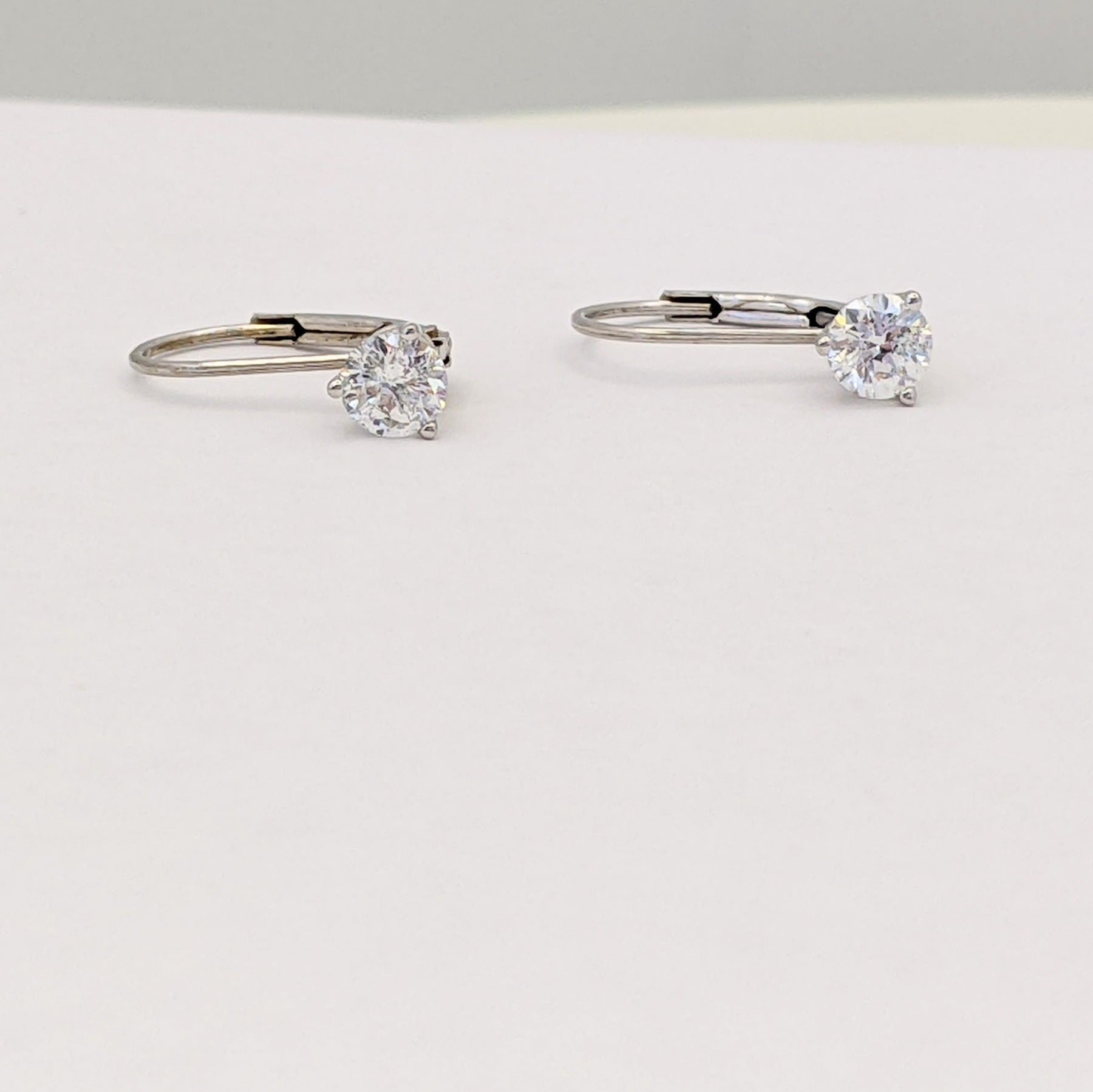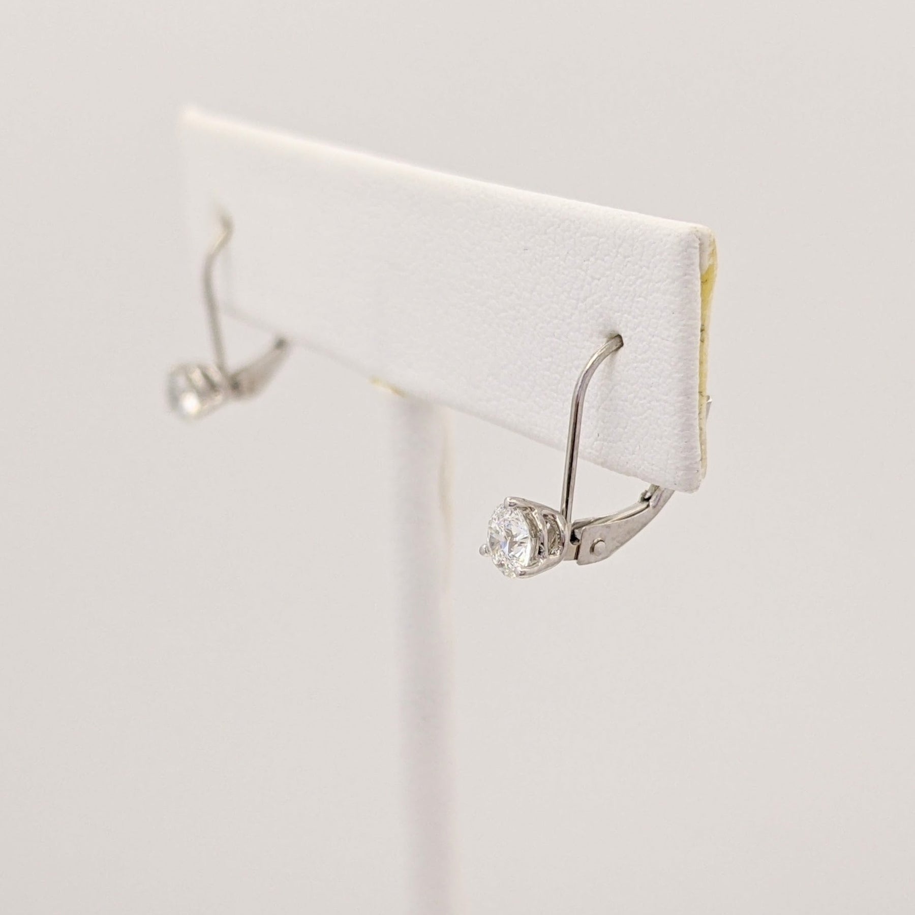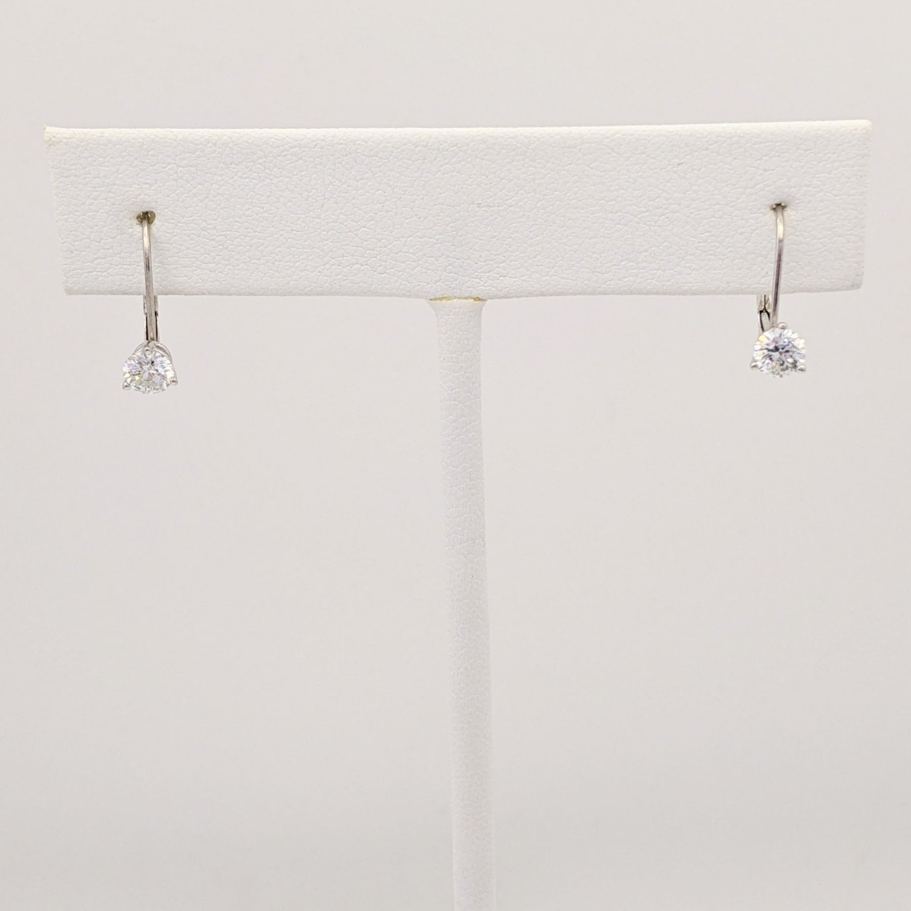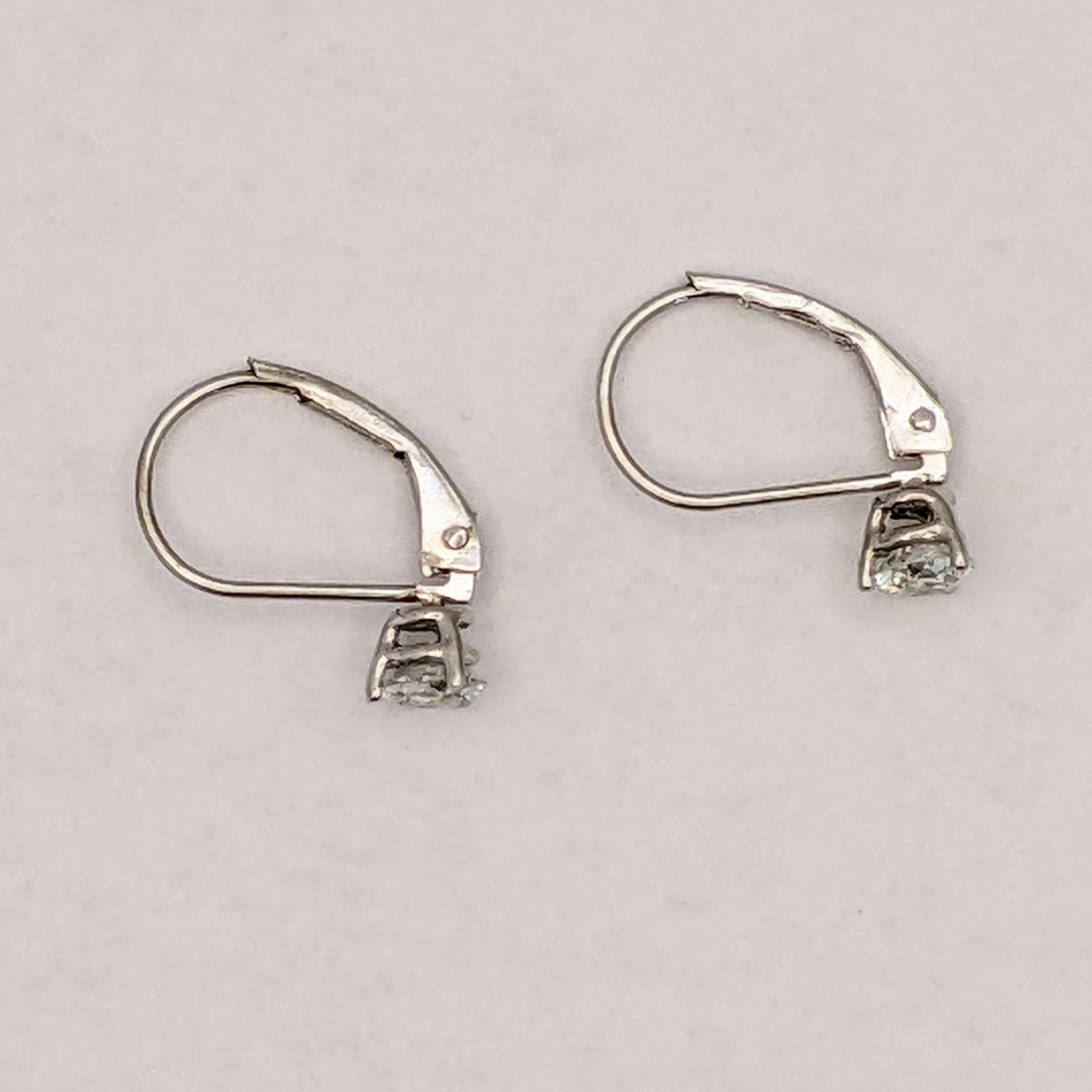 14K WHITE .46 CARAT TOTAL WEIGHT I1 I DIAMOND ROUND (2) LEVERBACK ESTATE EARRINGS 0.8 GRAMS