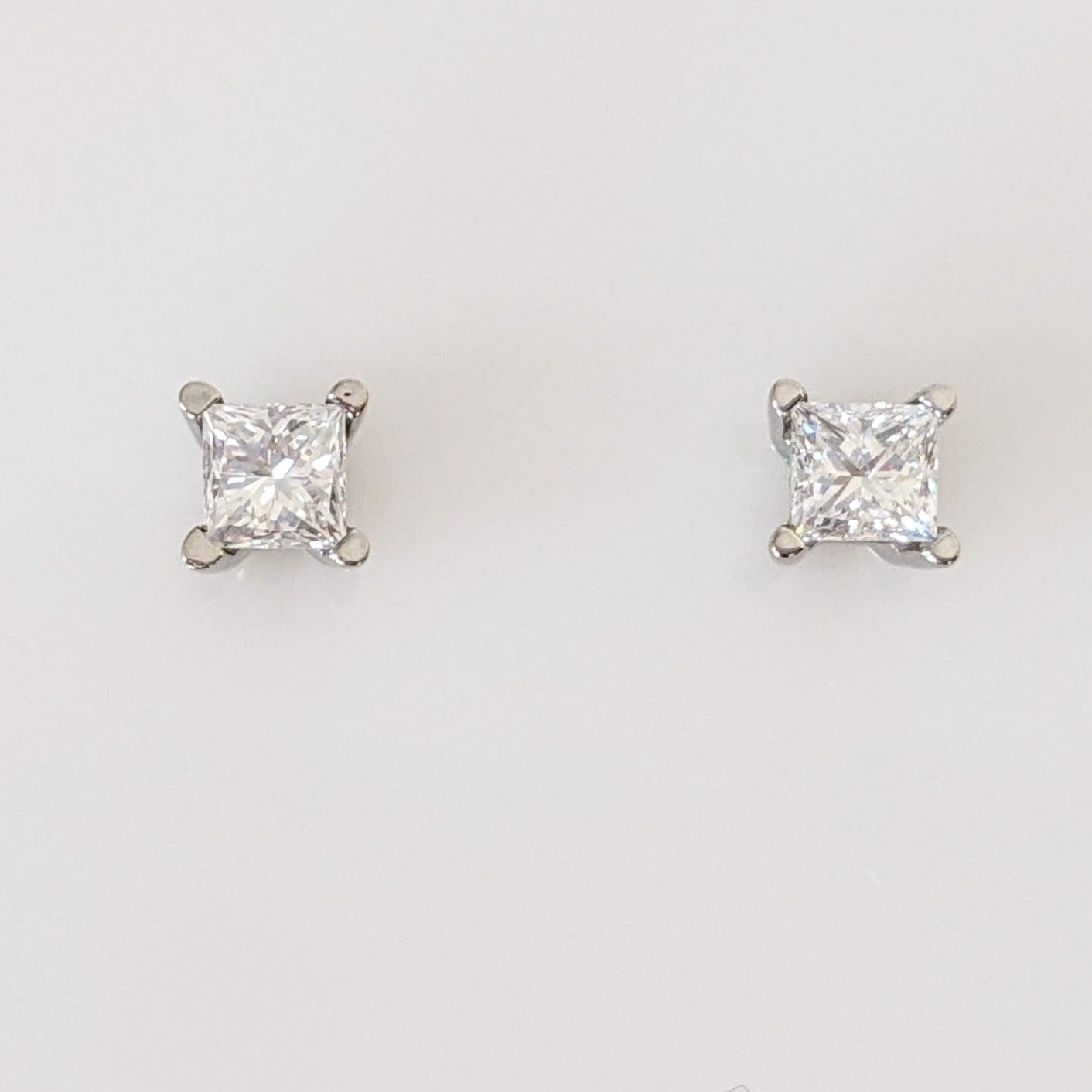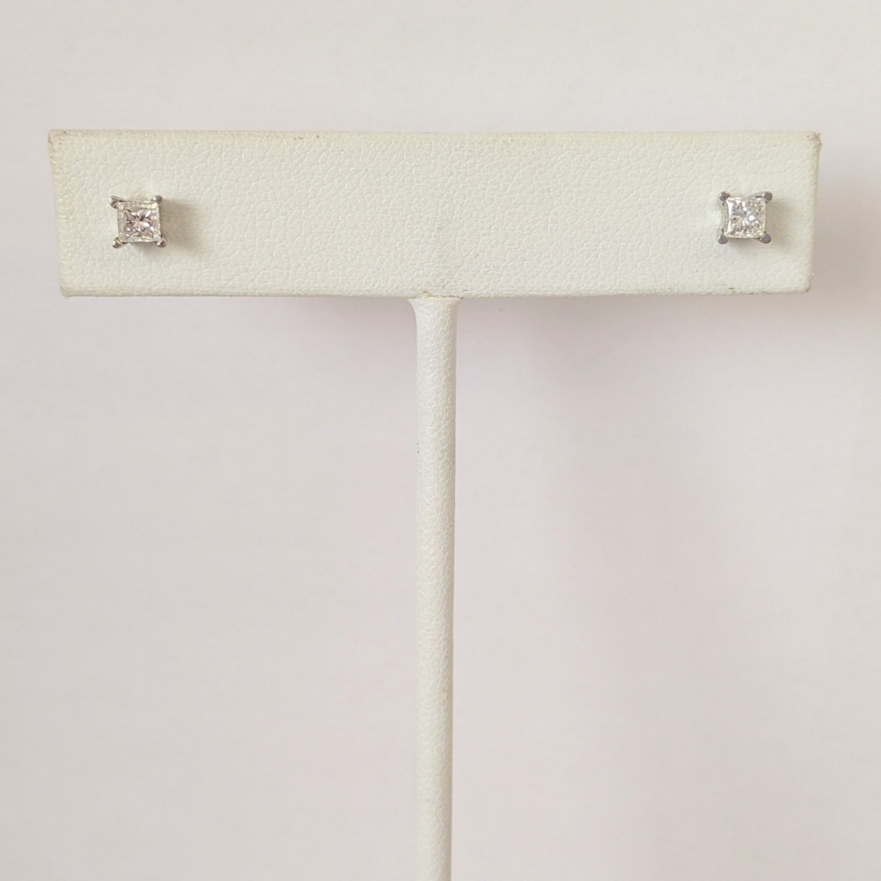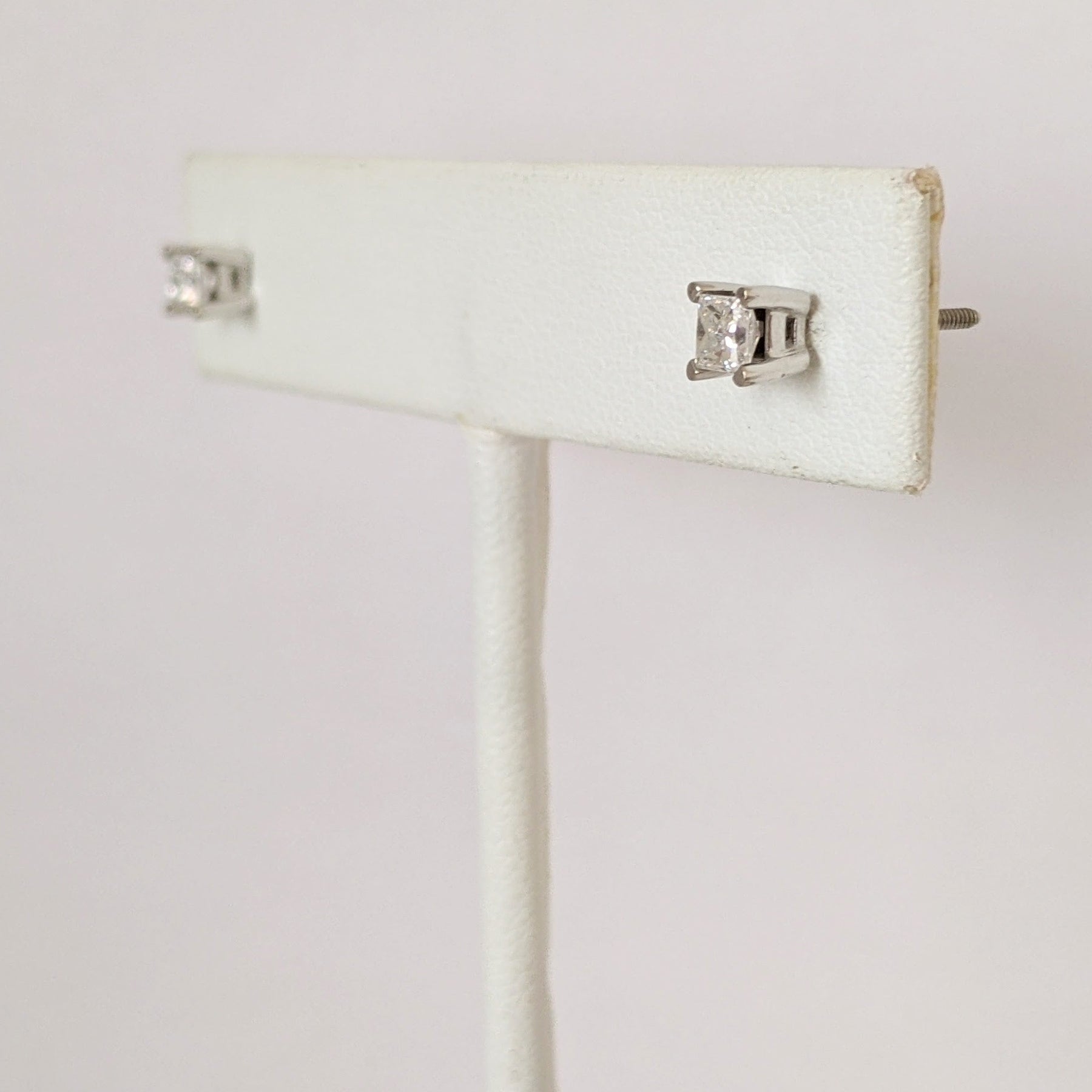 14K WHITE .48 CARAT TOTAL WEIGHT SI2 G DIAMOND PRINCESS CUT (2) ESTATE STUD EARRINGS 0.9 GRAMS