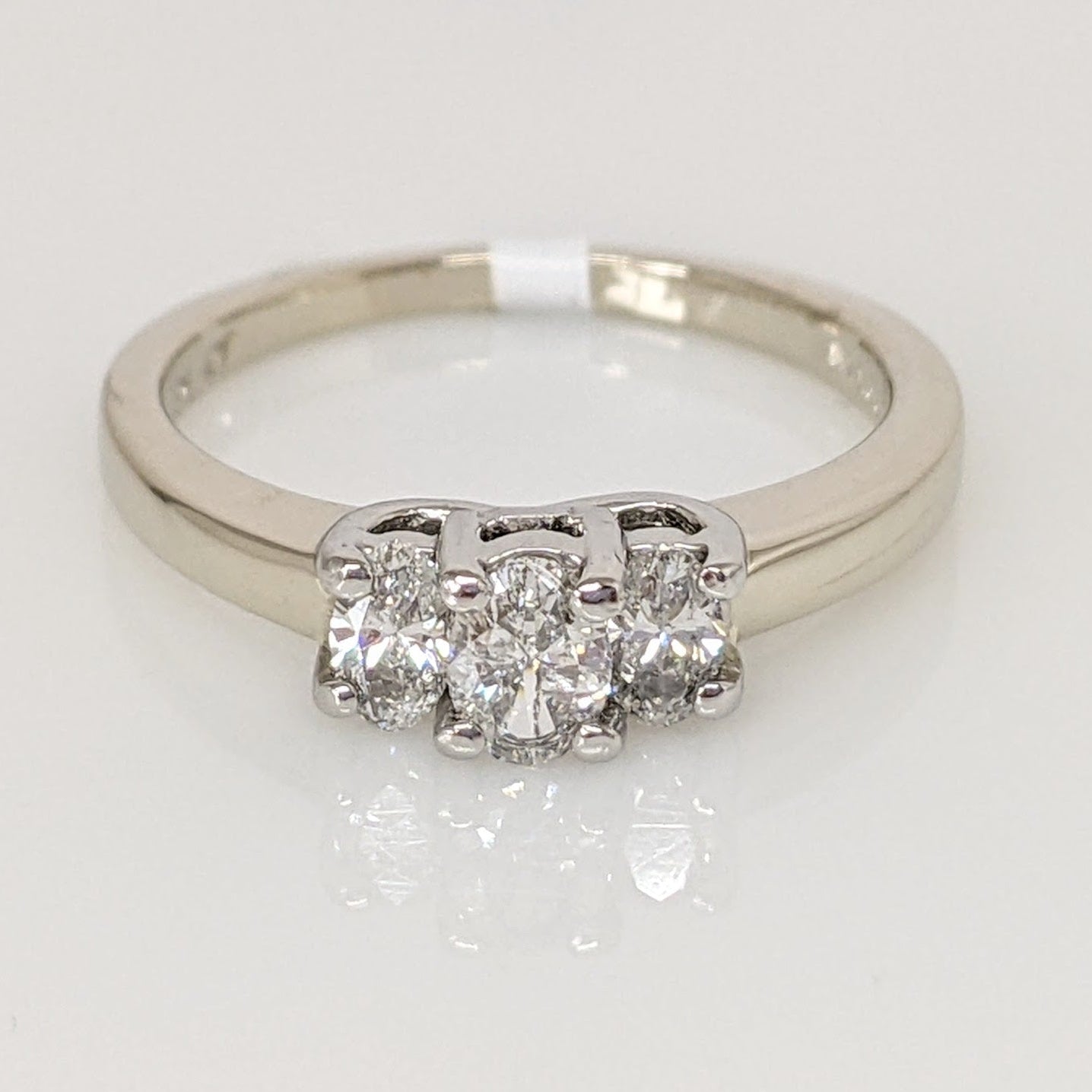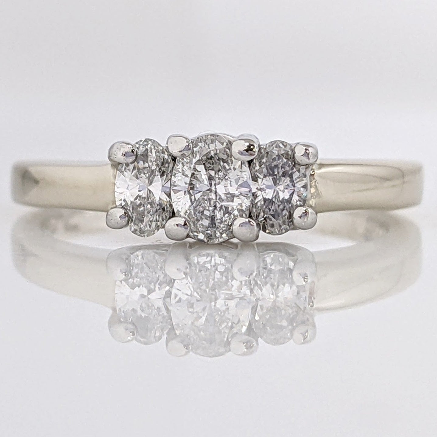 14K WHITE/PLATINUM .61 CARAT TOTAL WEIGHT SI2 G DIAMOND OVAL (3) TRINITY ESTATE RING 3.4 GRAMS