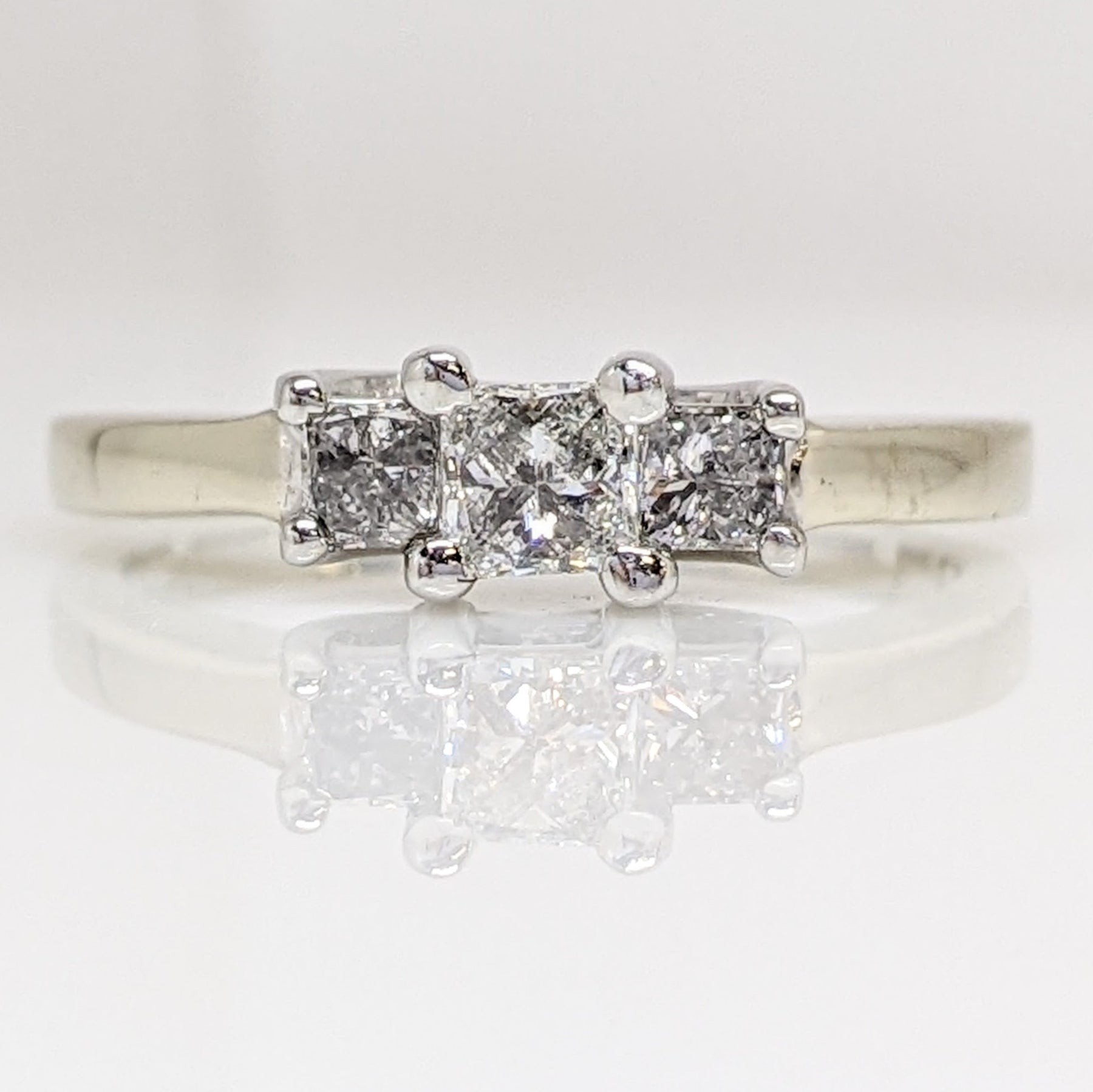 14K WHITE/PLATINUM .35 CARAT TOTAL WEIGHT I1 H DIAMOND PRINCESS CUT (3) TRINITY ESTATE RING 3.7 GRAMS