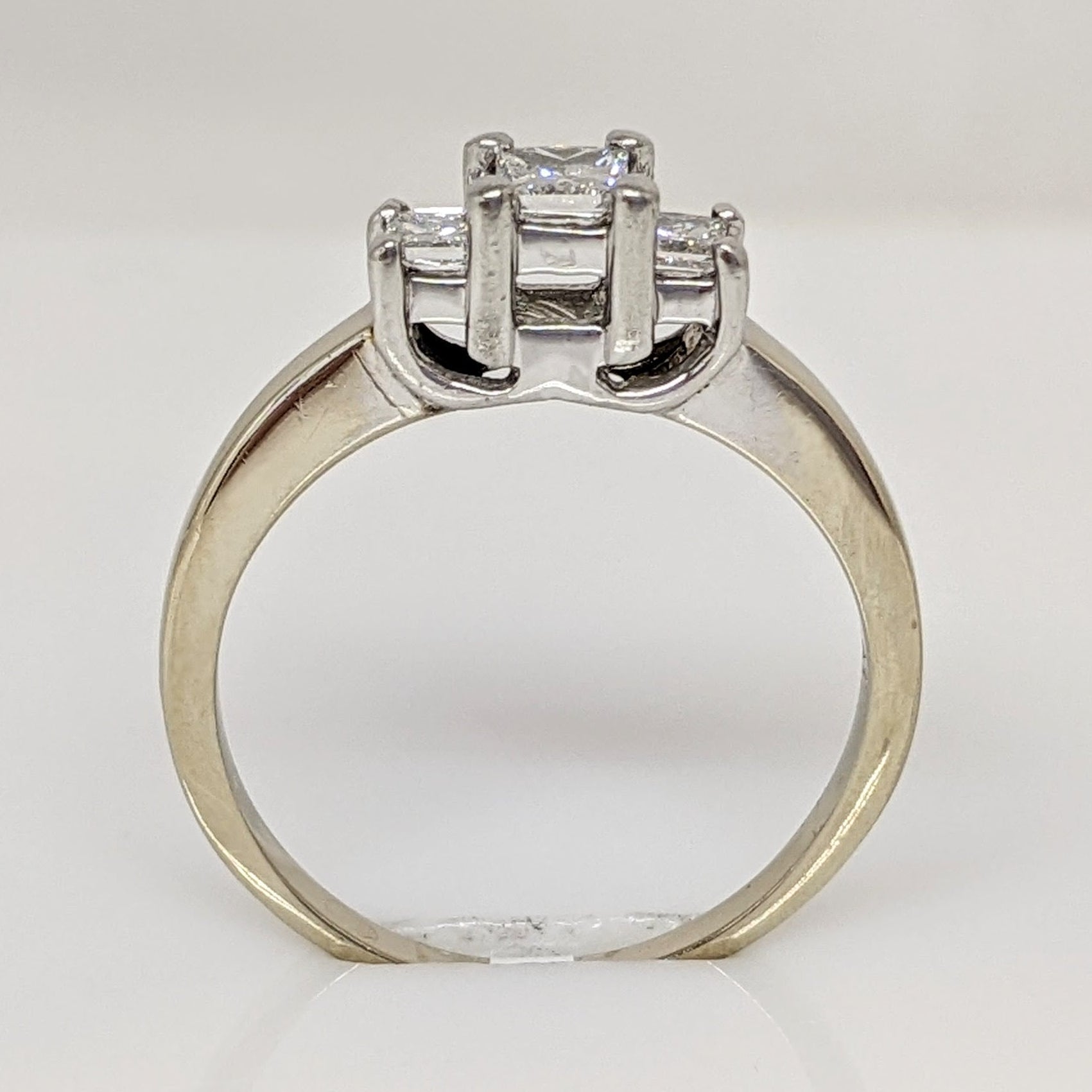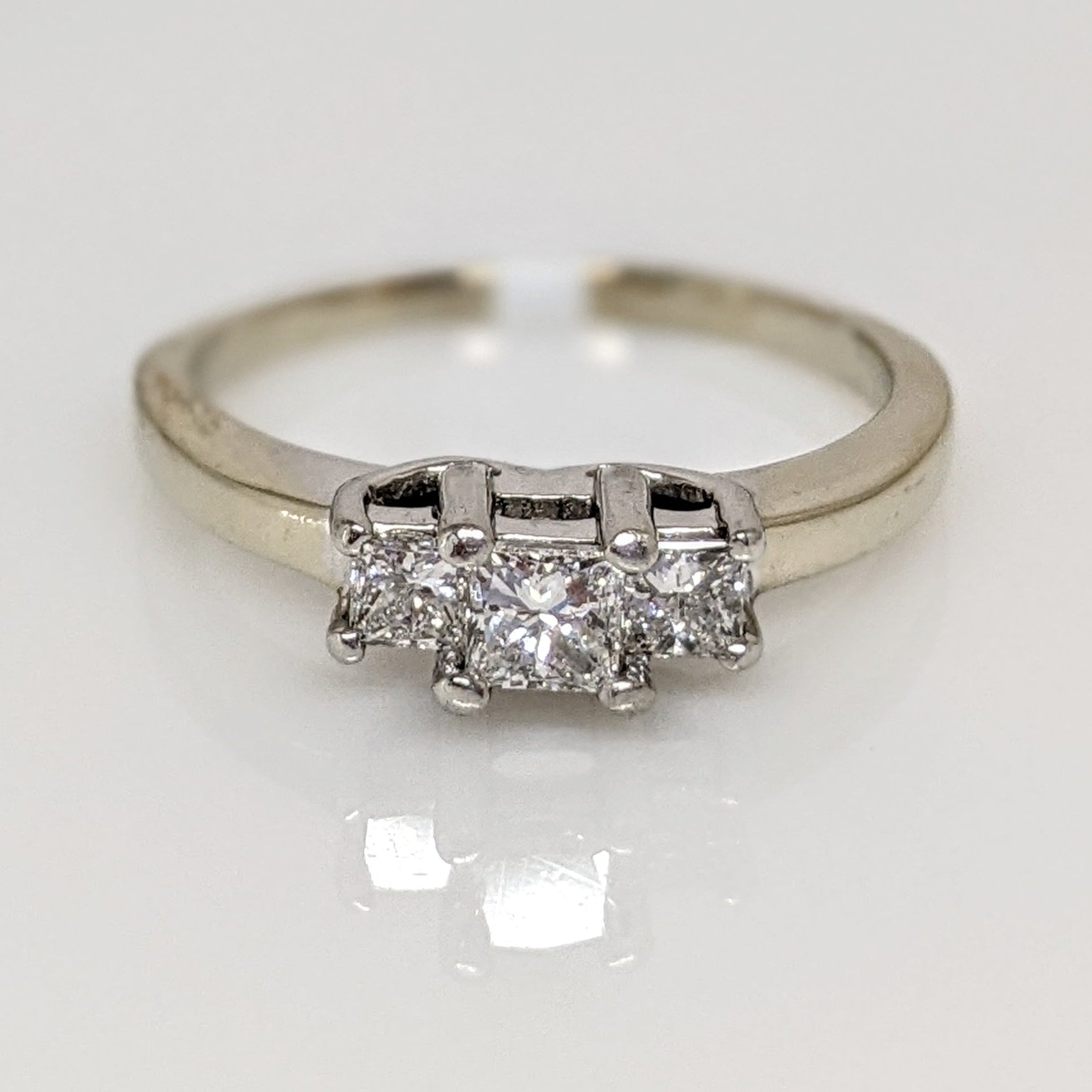 14K WHITE/PLATINUM .43 CARAT TOTAL WEIGHT SI2 G DIAMOND PRINCESS CUT (3) TRINITY ESTATE RING 3.4 GRAMS