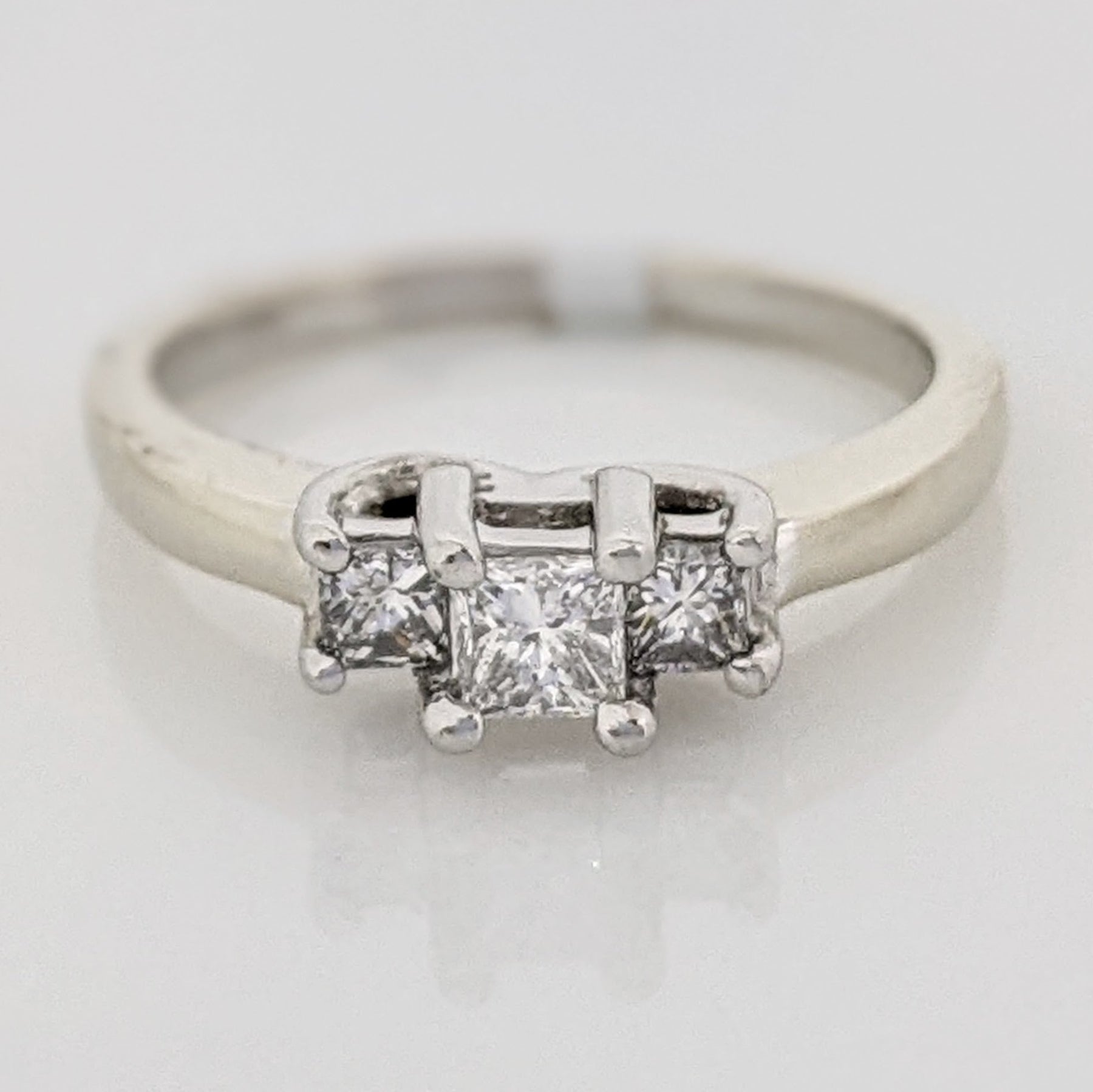 14K WHITE/PLATINUM .48 CARAT TOTAL WEIGHT SI2 H DIAMOND PRINCESS CUT (3) TRINITY ESTATE RING 3.9 GRAMS