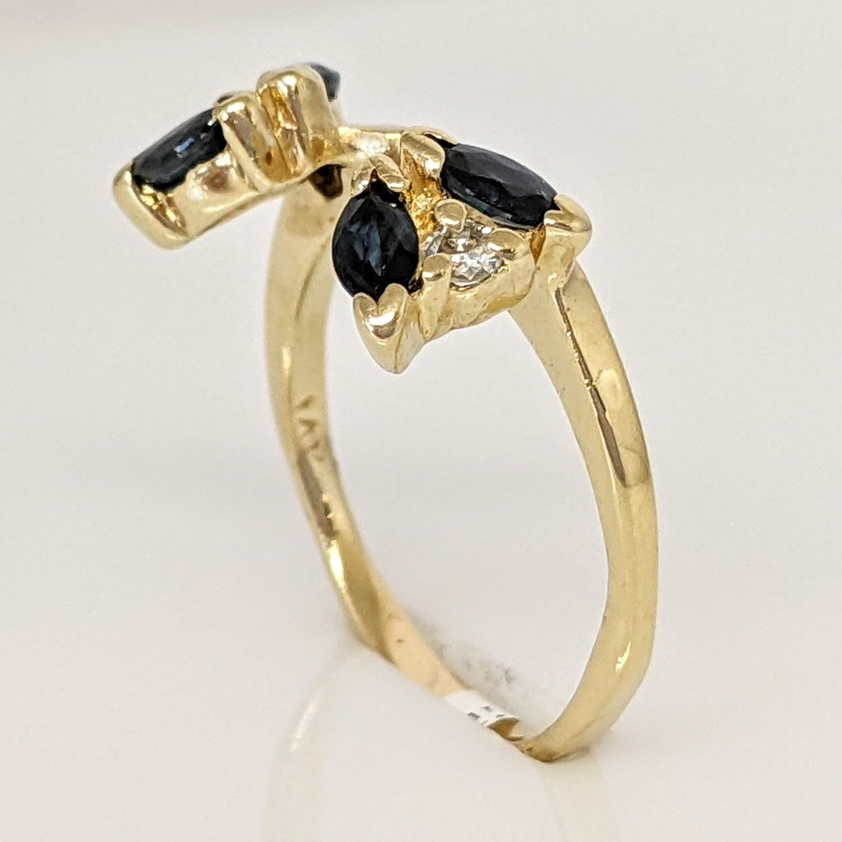 14K SAPPHIRE MARQUISE CUT 2X4 (4) WITH MELEE (2) ESTATE WRAP 2.2 GRAMS